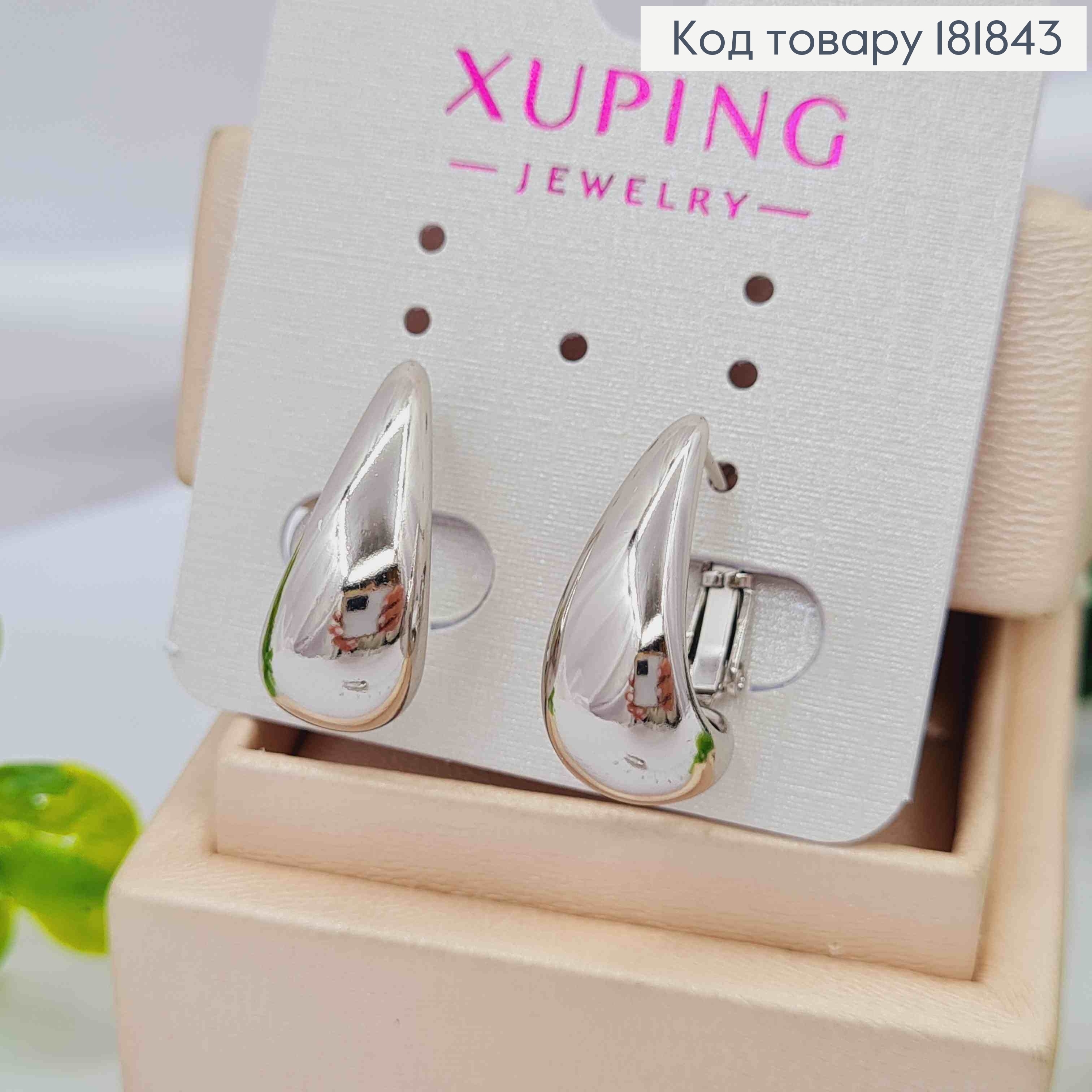 Серьги родованные "Капелька", 2,1см, итальянская застежка, XUPING