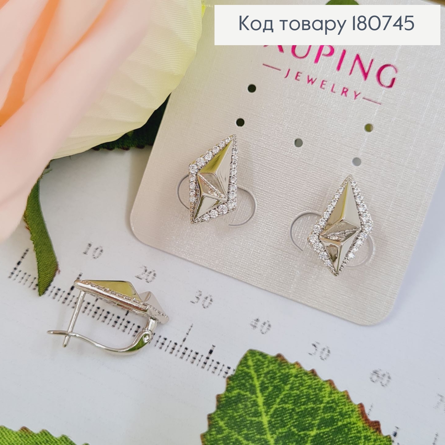 Сережки родированые Объемный Триугольник (англ.застежка), 1,5*0,8см, Xuping