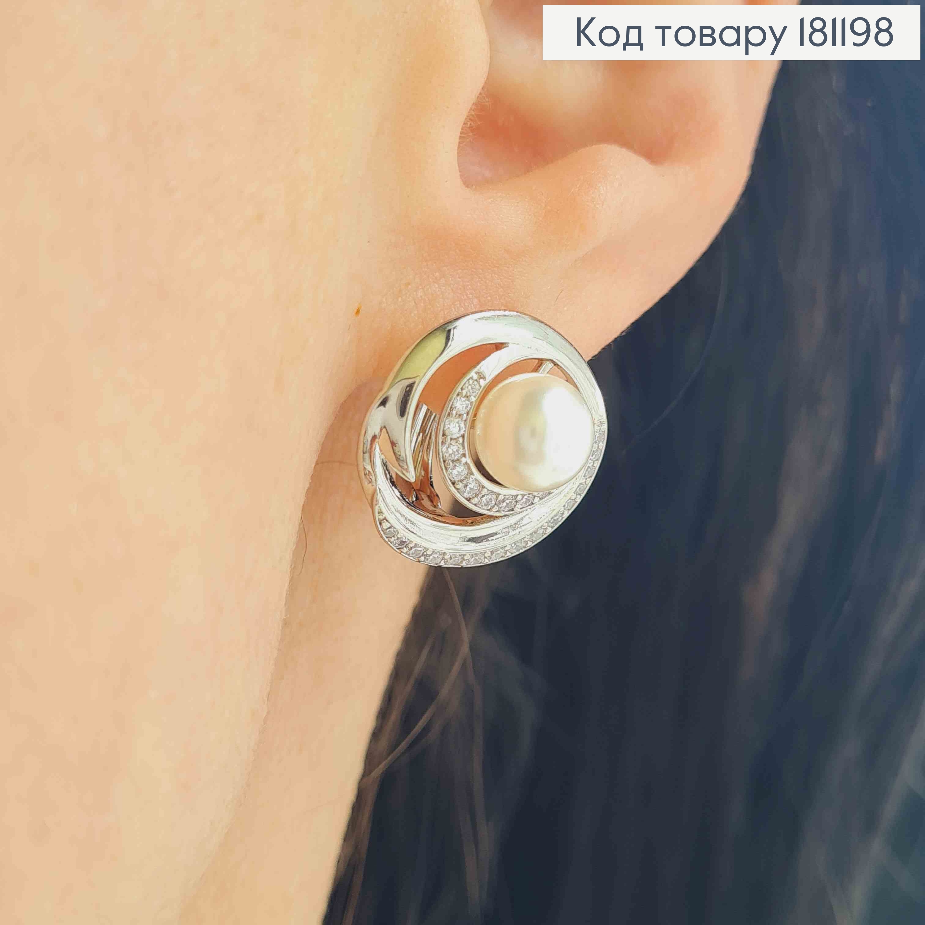 Серьги родованные гвоздики с блестящими камешками и жемчужиной, размером 1,1см, Xuping 181958 фото