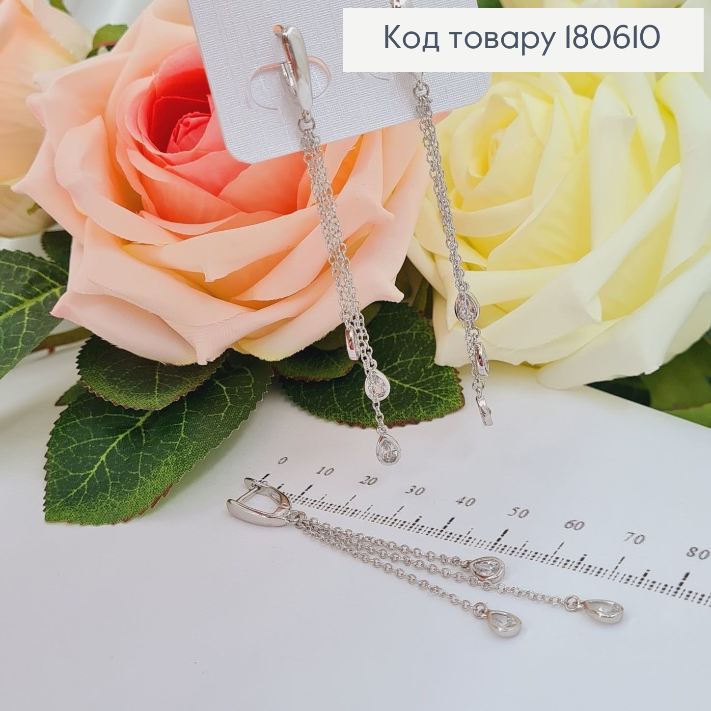 Серьги родированые подвески с камнями 1,5+6см Xuping