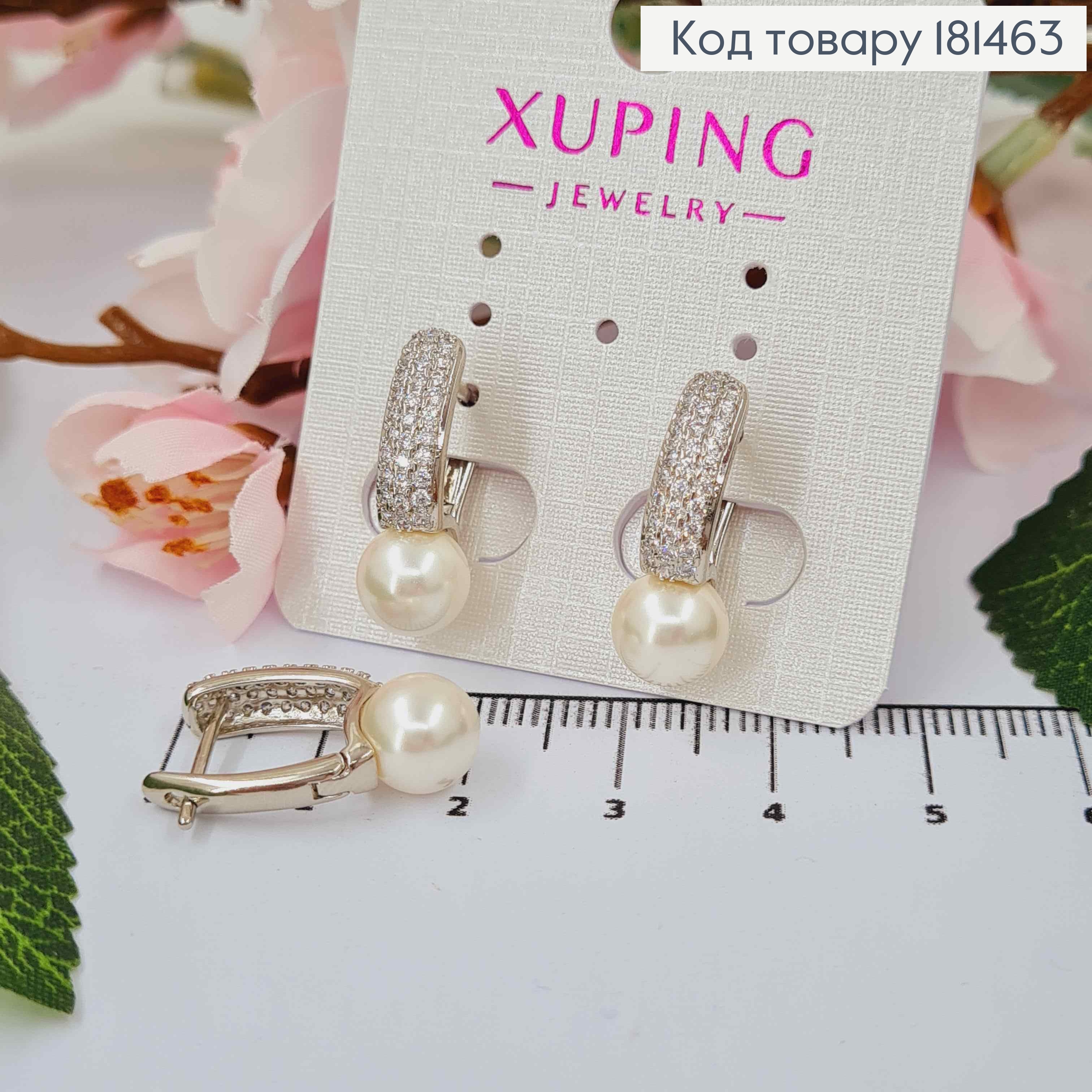 Серьги родованные гвоздики с блестящими камешками и жемчужиной, размером 1,1см, Xuping 181958 фото