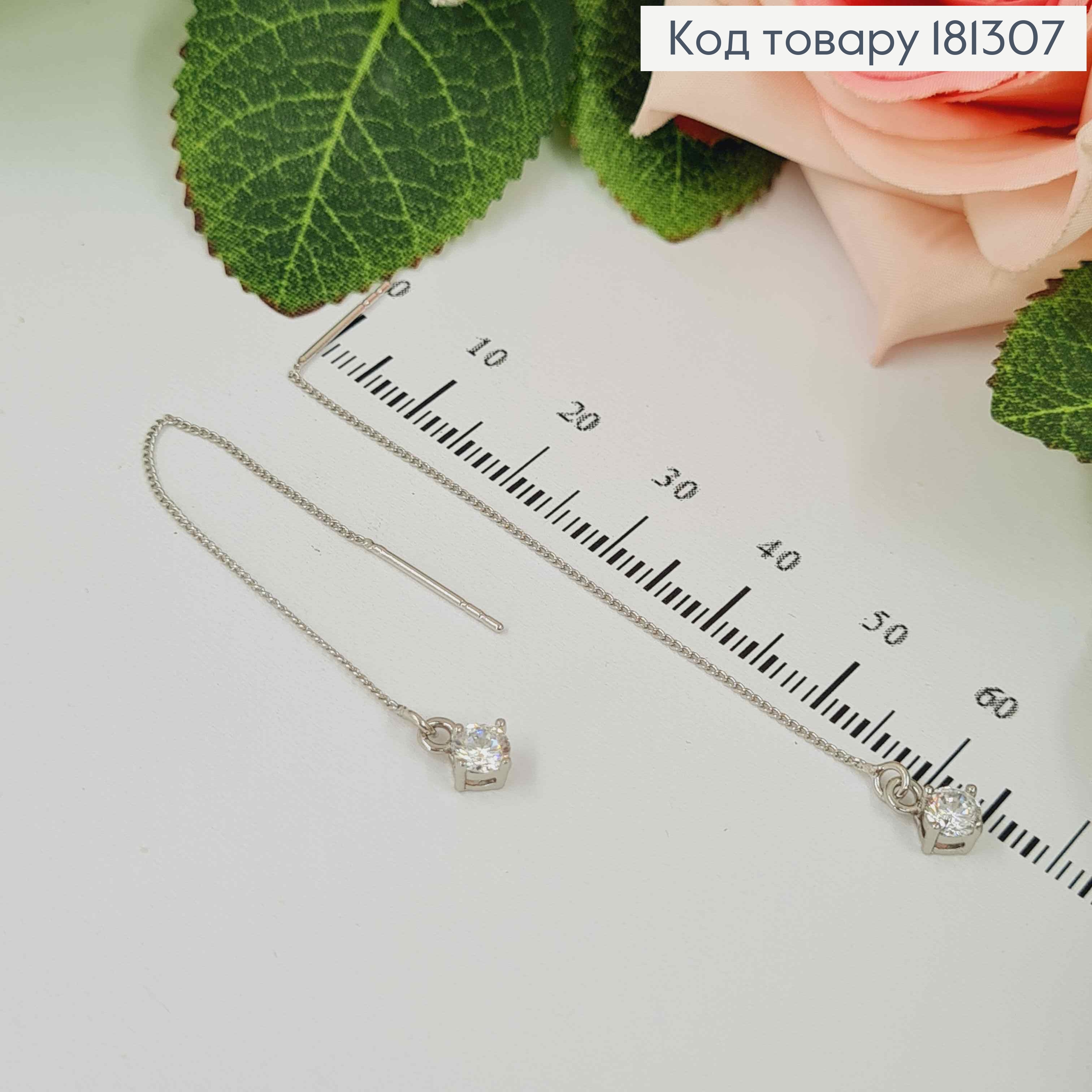 Серьги родованные протяжки с камешком, 8см Xuping