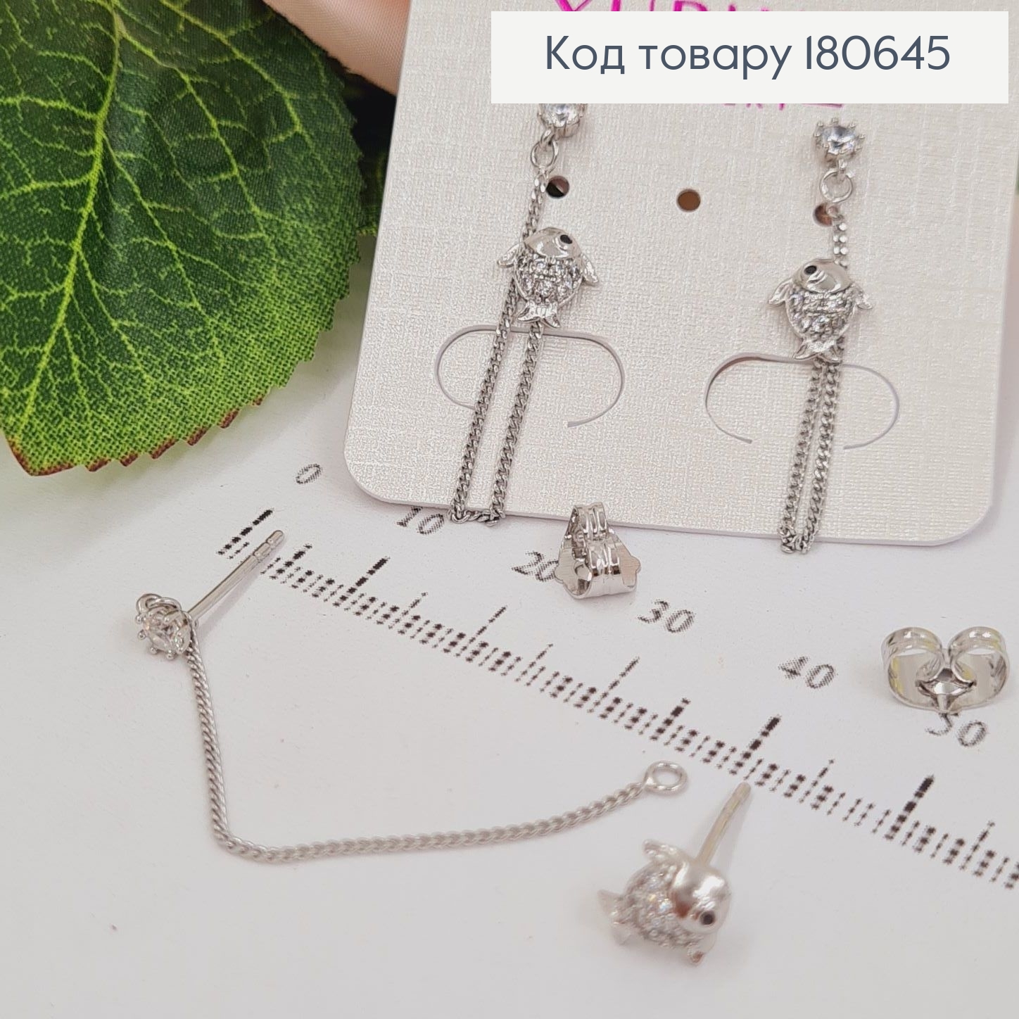 Сережки родированые рыбки с камнями на два прокола, Хuping