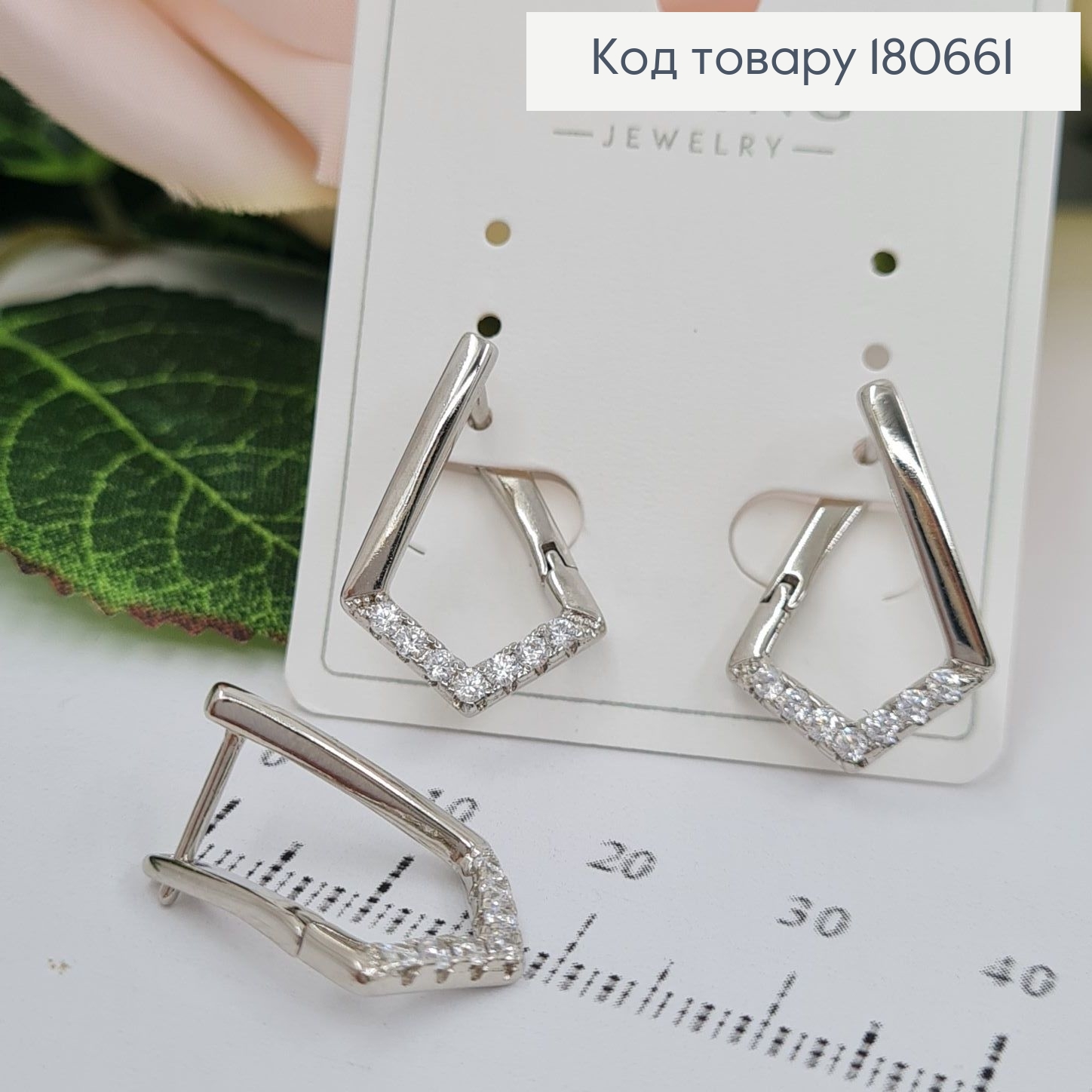 Сережки родированые Ромб 3D с камнями (англ.застежка), 2*1,5см, Xuping