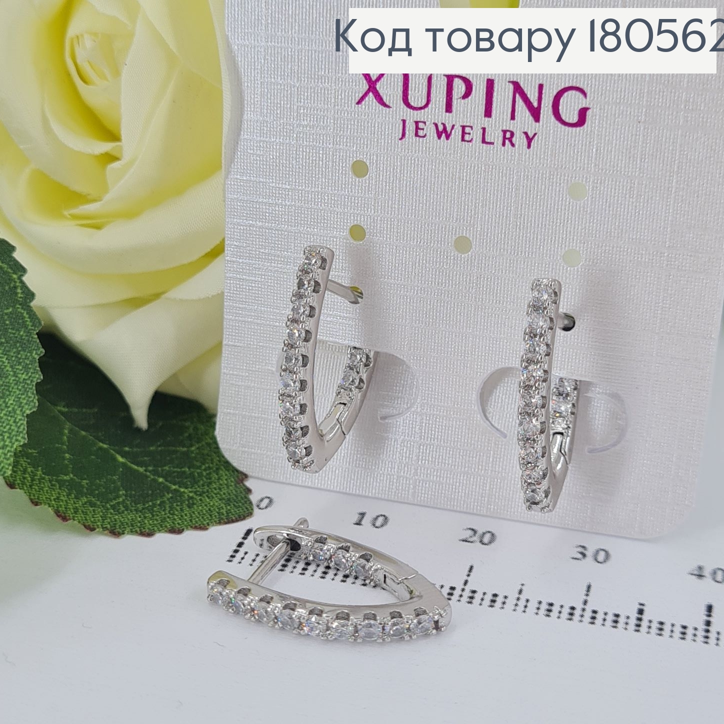 Серьги родованные украшены Блестящими камешками, 2см, английская застежка, Xuping 181960 фото