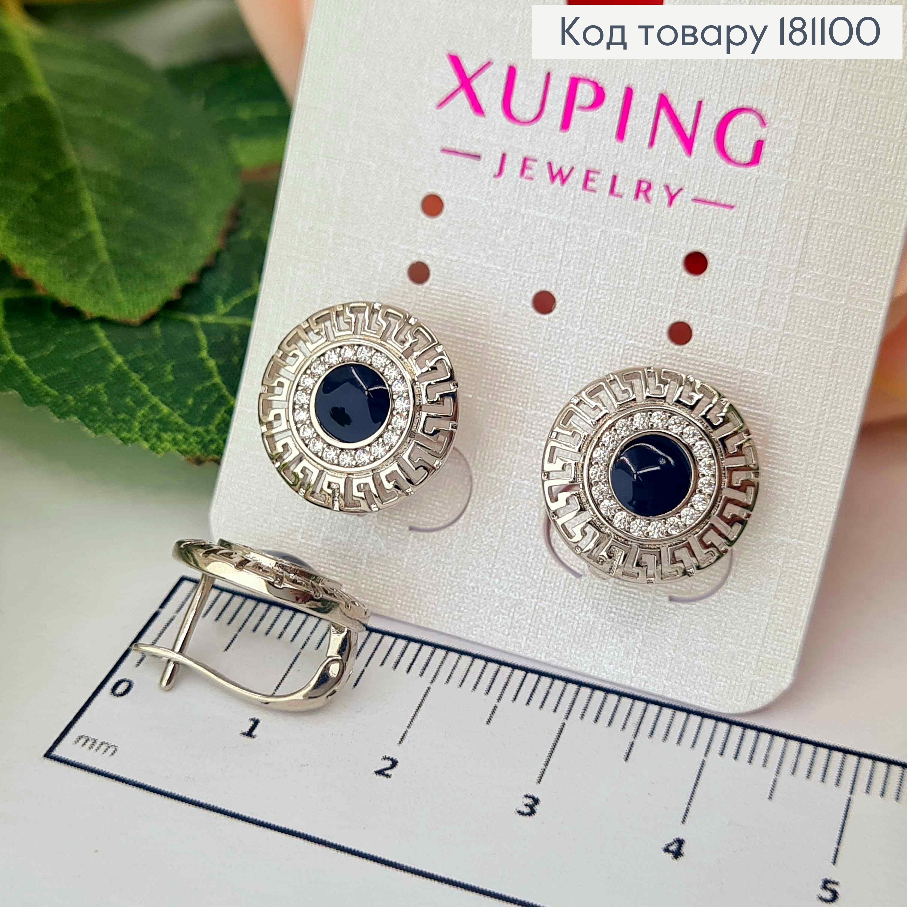 Серьги родованные, Версаче с черной вставкой и камешками, 1,4 см, англ. зам. Xuping