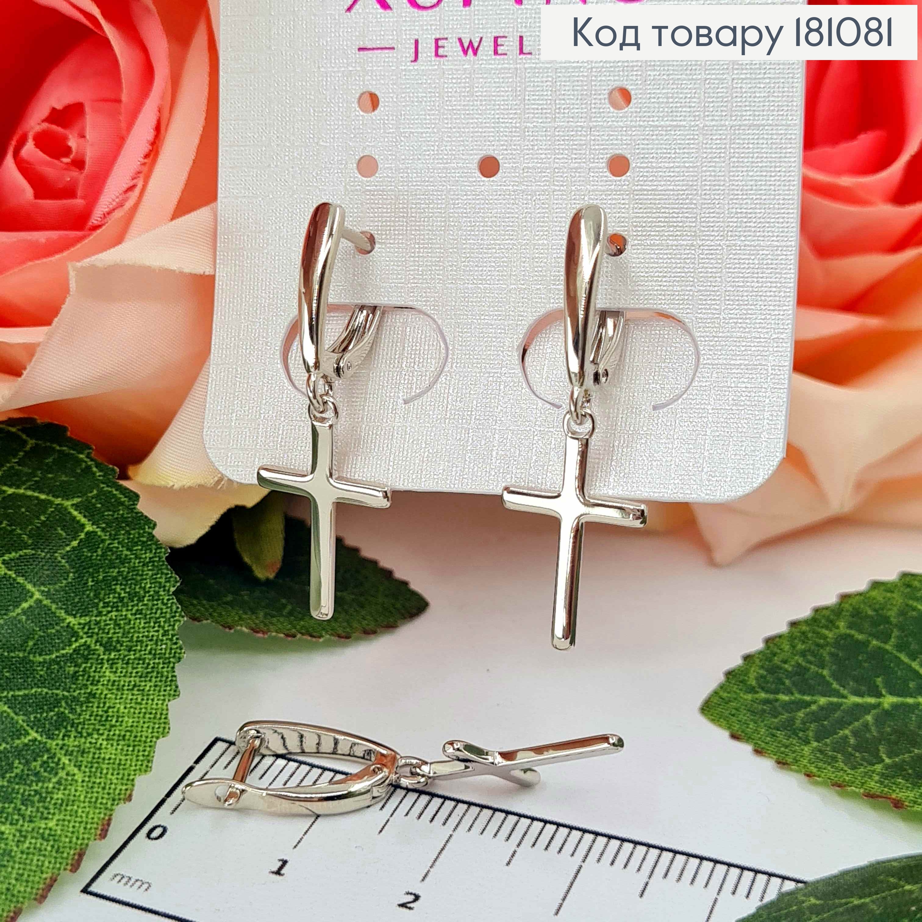 Серьги родованные, с подвеской Крестиком 1,5см, англ. зам. Xuping