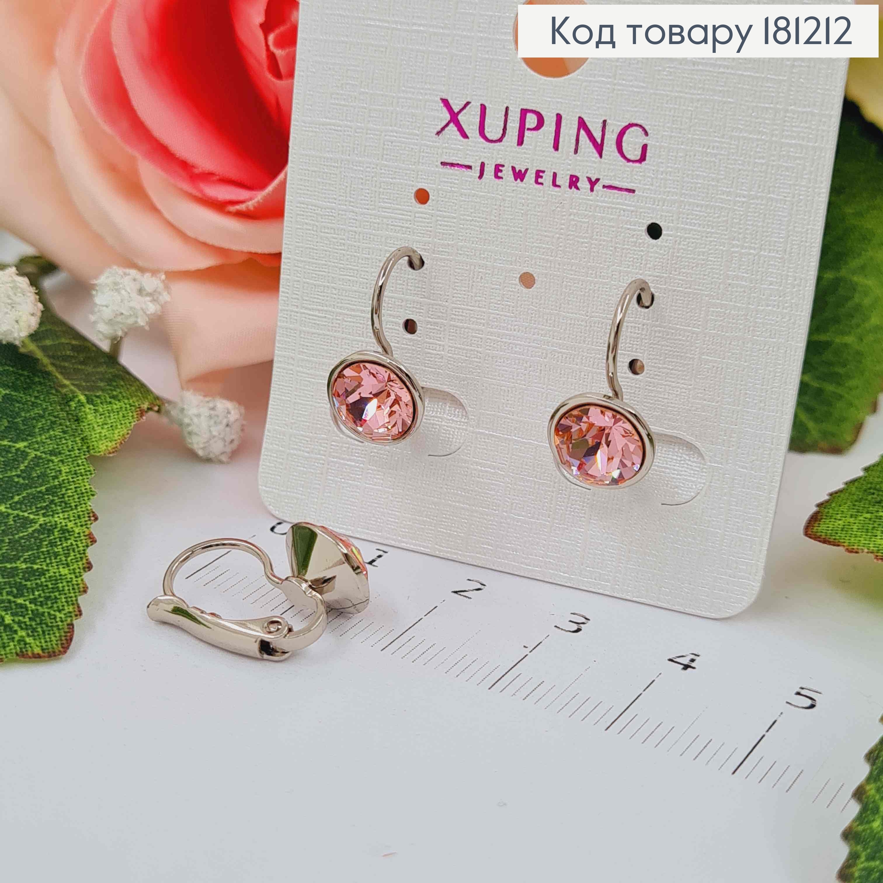 Серьги родованные, с розовым камешком Сваровски, франц. зам. Xuping