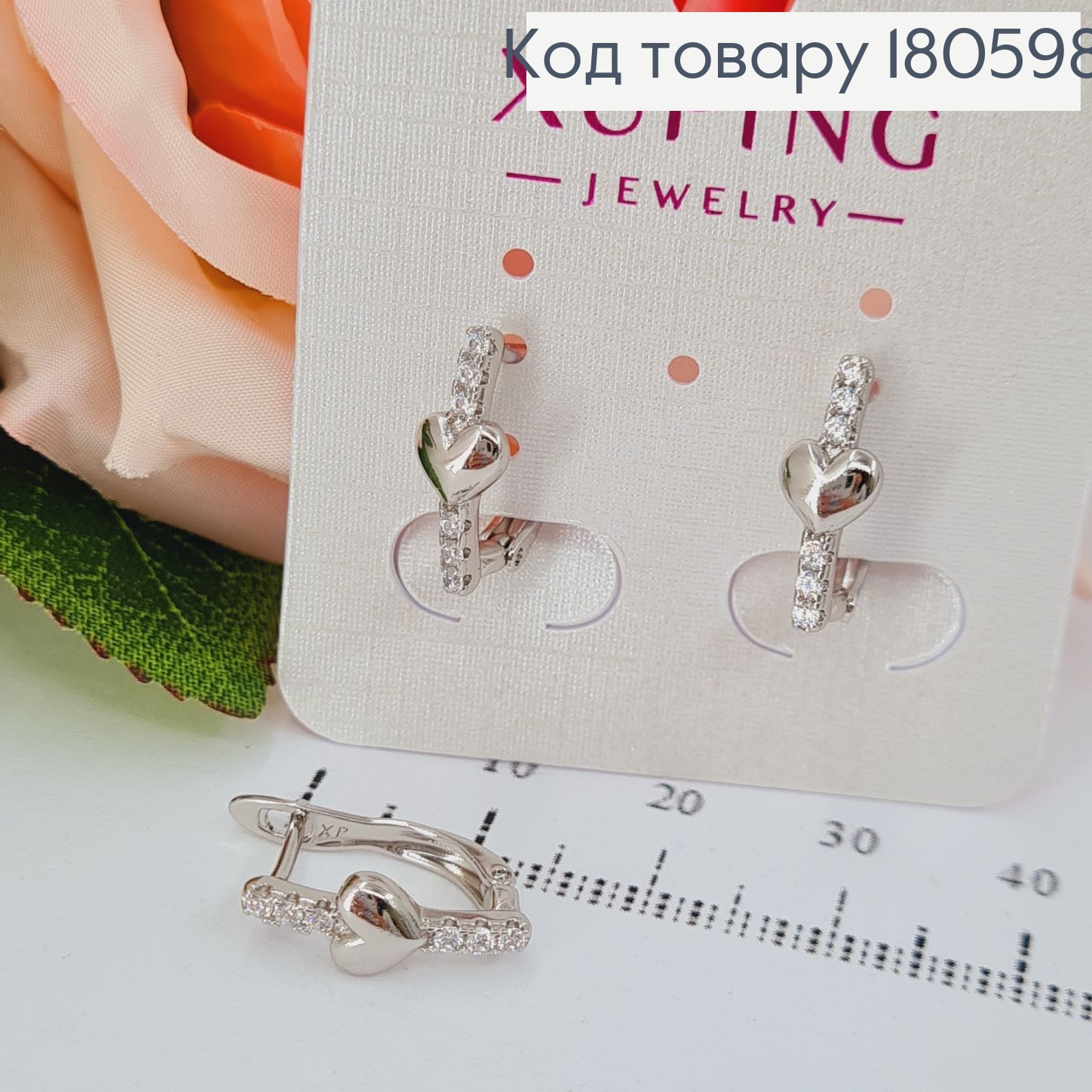 Серьги родированые с сердечком с камнями 1,5см Xuping