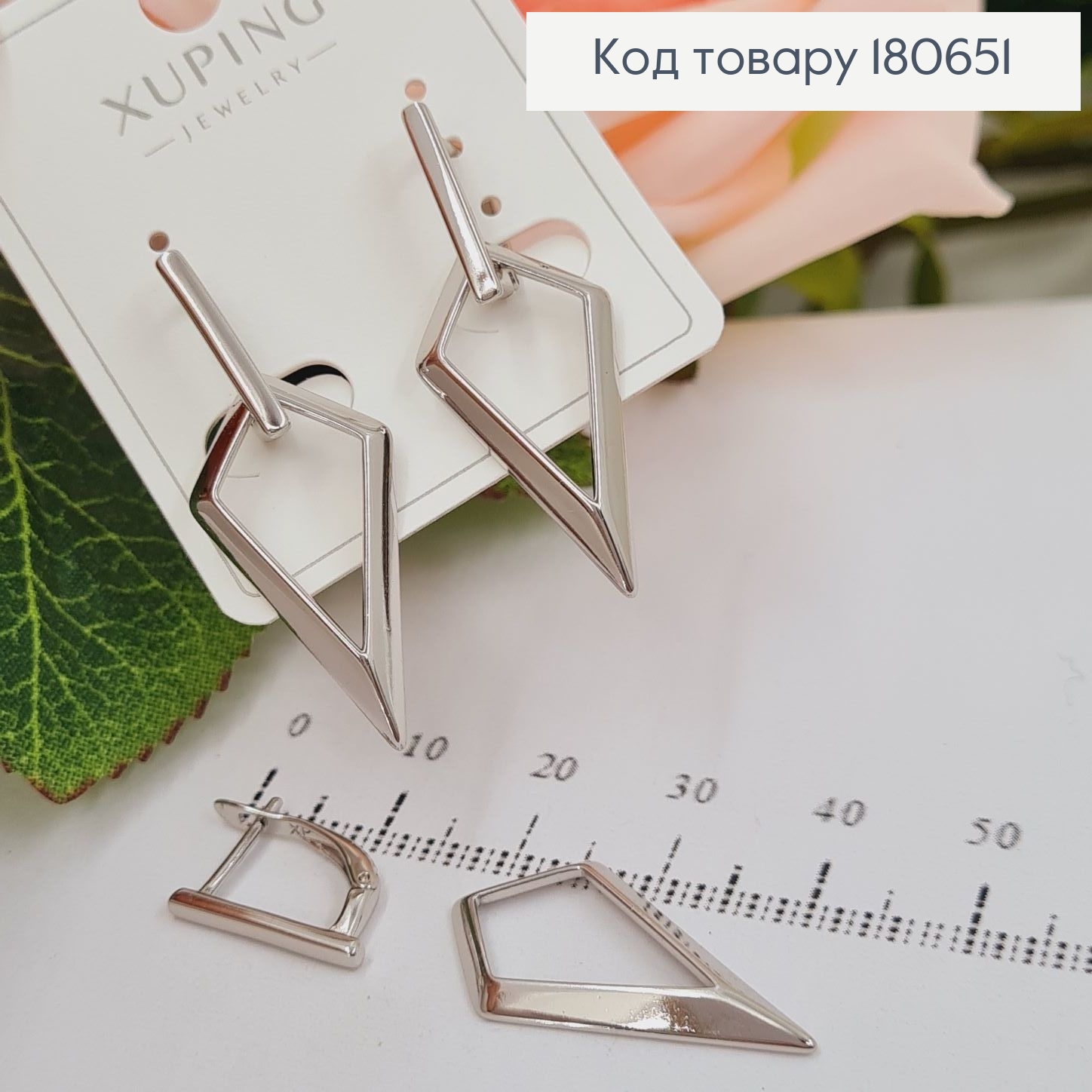 Сережки родированые со сменной подвеской, ромб(2,8см), Хuping