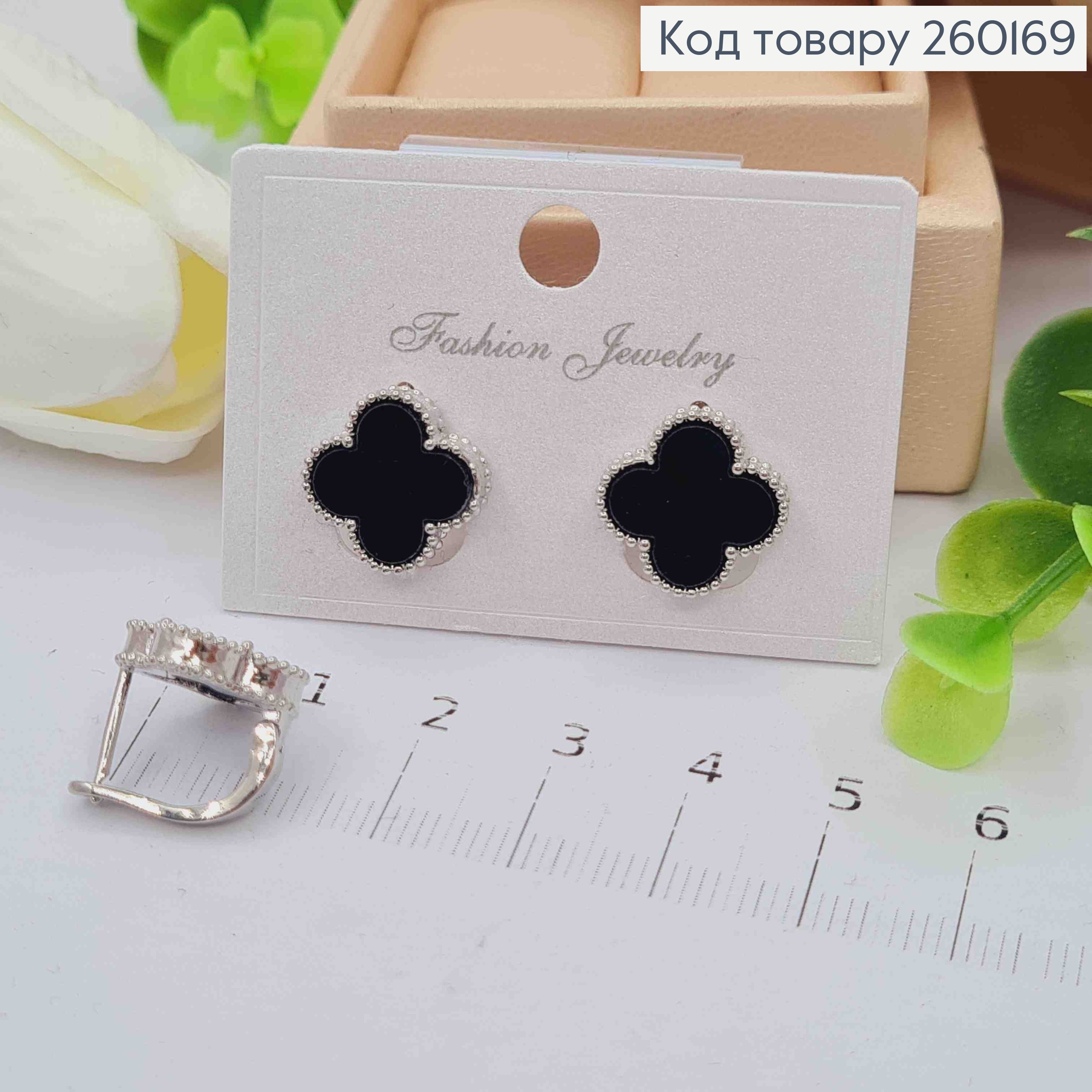 Серьги серебряного цвета, Van Cleef с черной эмалью (1,4см), англ. застежка, Fashion Jewelry