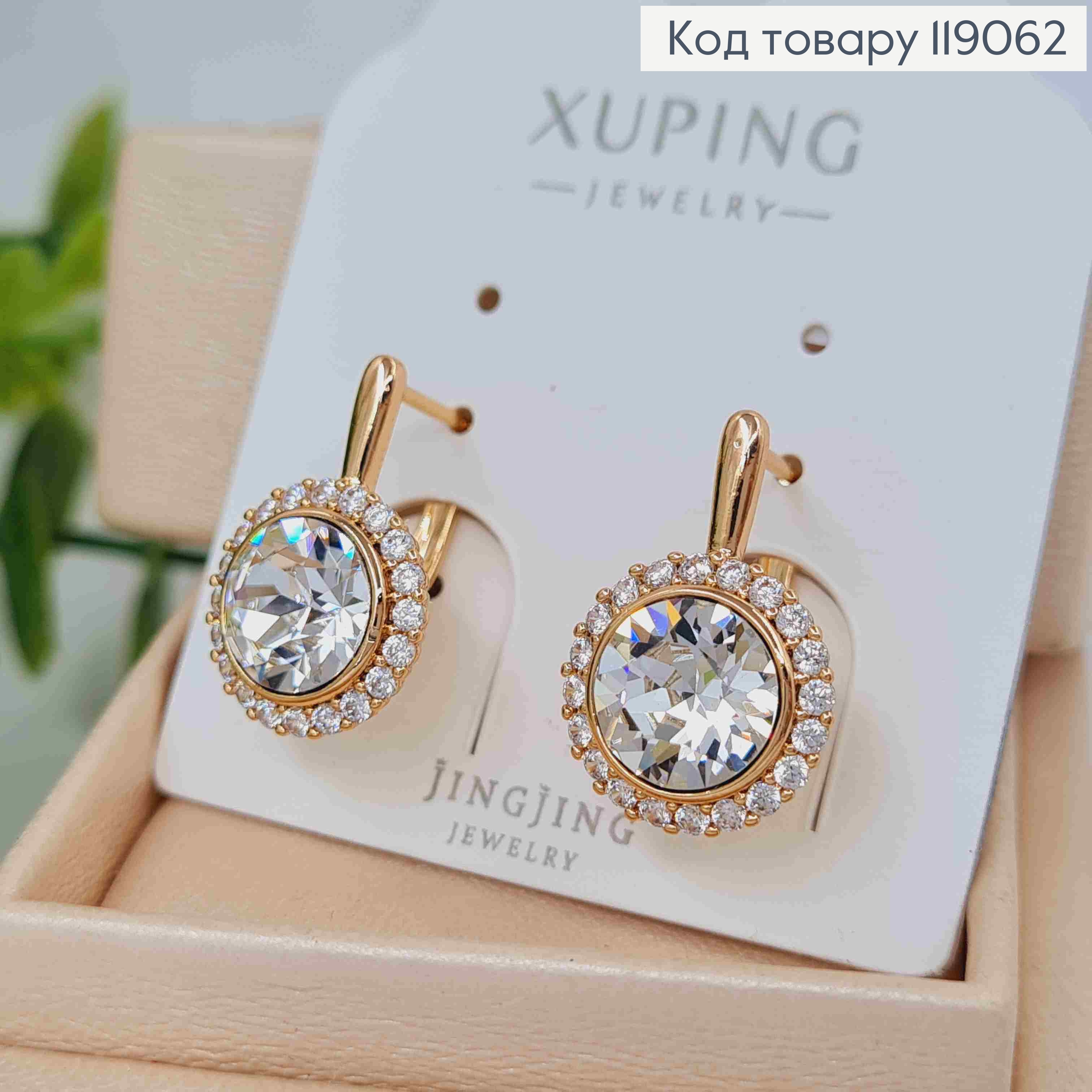 Серьги с Блестящим камнем Сваровски в оправе из камешков, дл. 1,9см, англ. застежка, Xuping 18К