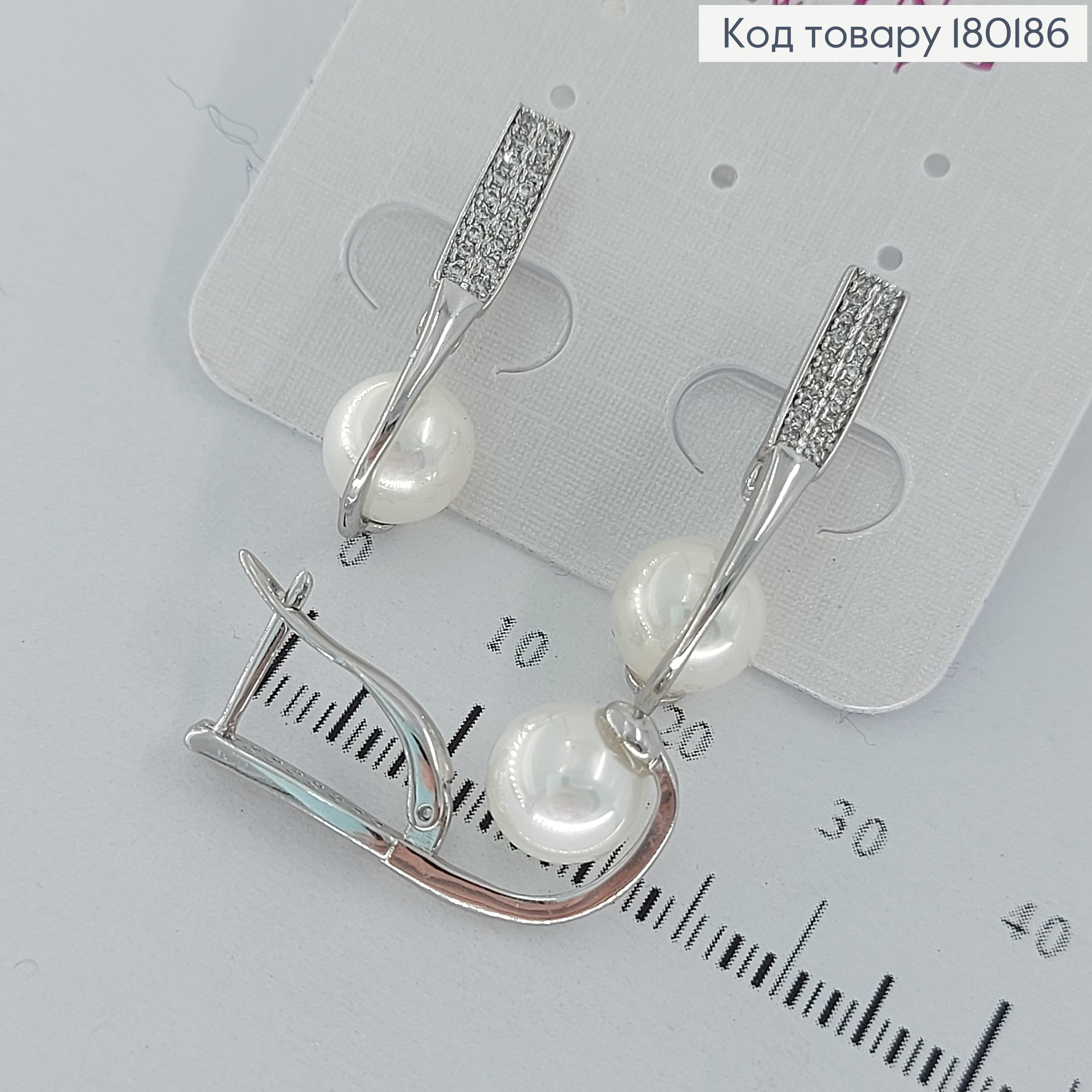 Серьги родованные гвоздики с блестящими камешками и жемчужиной, размером 1,1см, Xuping 181958 фото