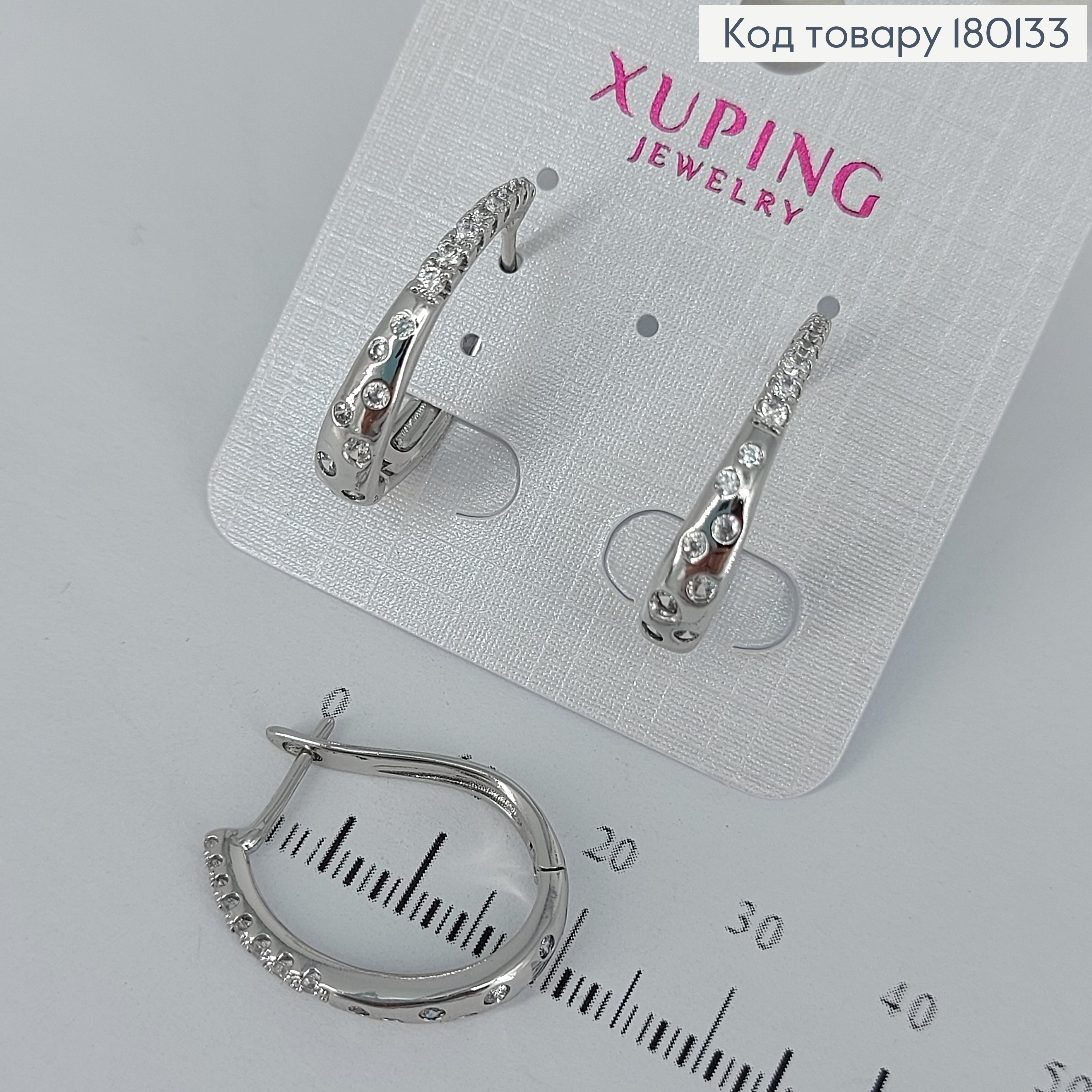 Серьги родованные "Блеск" украшены Блестящими камешками, 1,9см, английская застежка, Xuping 181961 фото