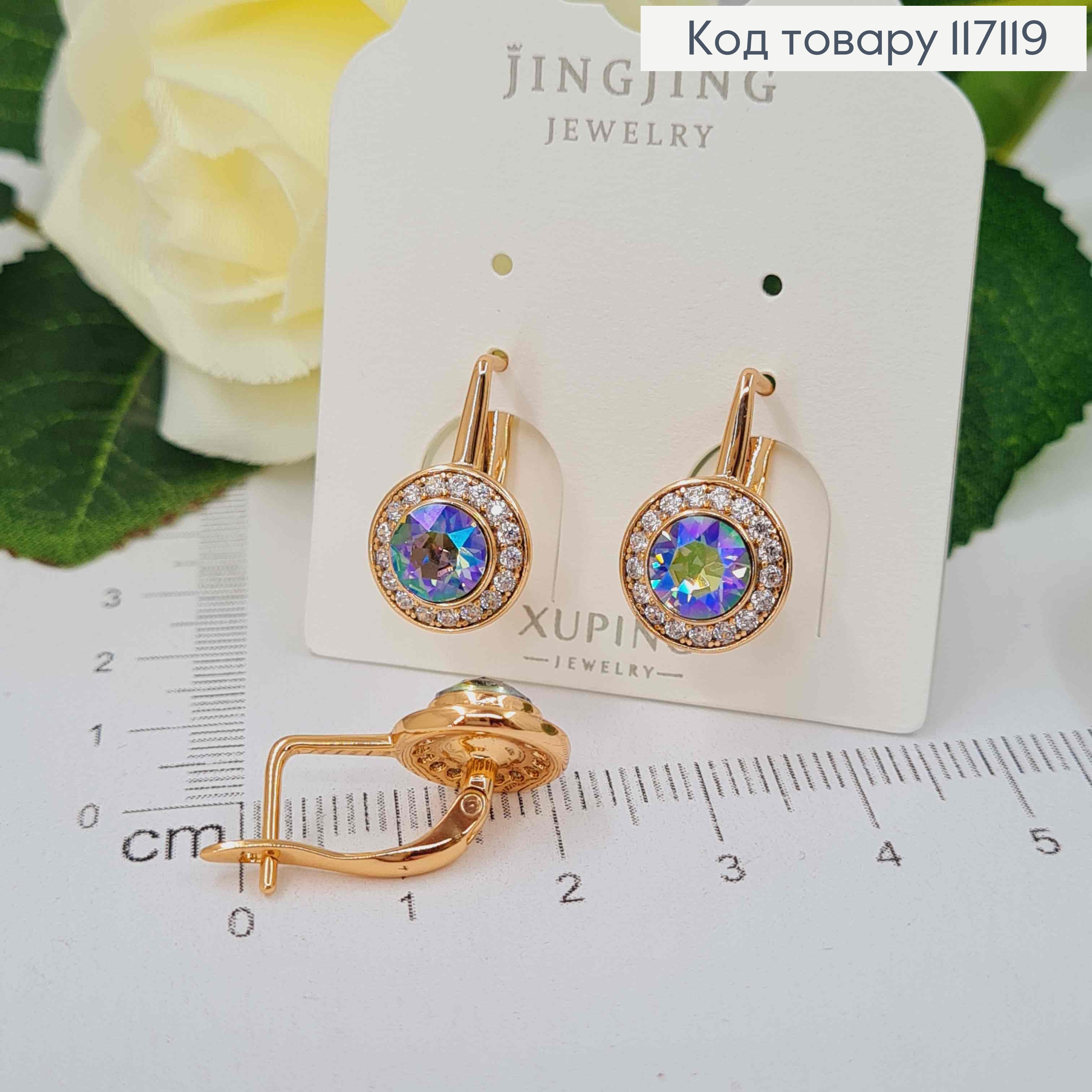 Серьги С круглым камешком-хамелеоном, Сваровски, 1,7см, англ. зам. Xuping 18К