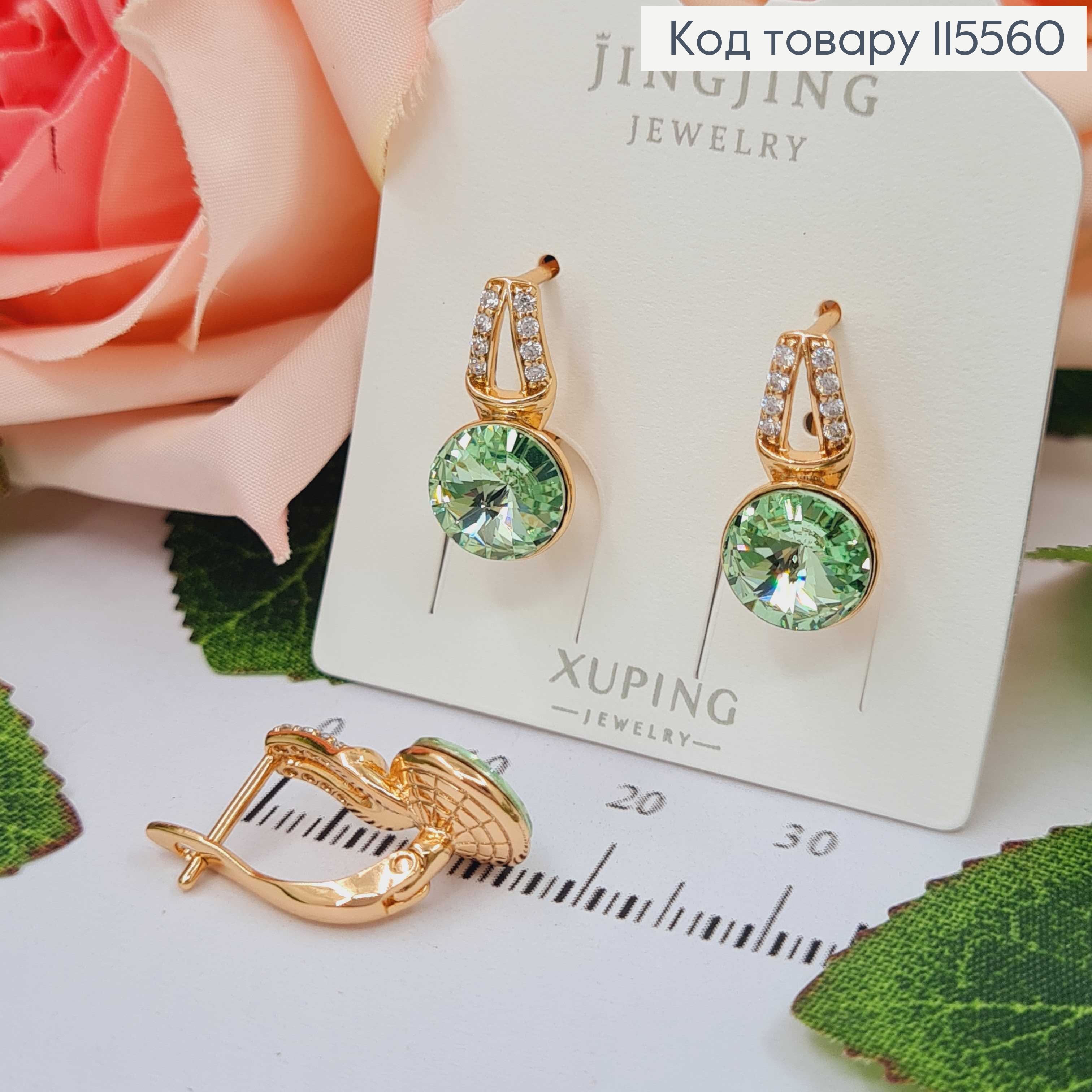Серьги с салатовым камнем Сваровски, 1,7см, англ зам. Xuping 18K