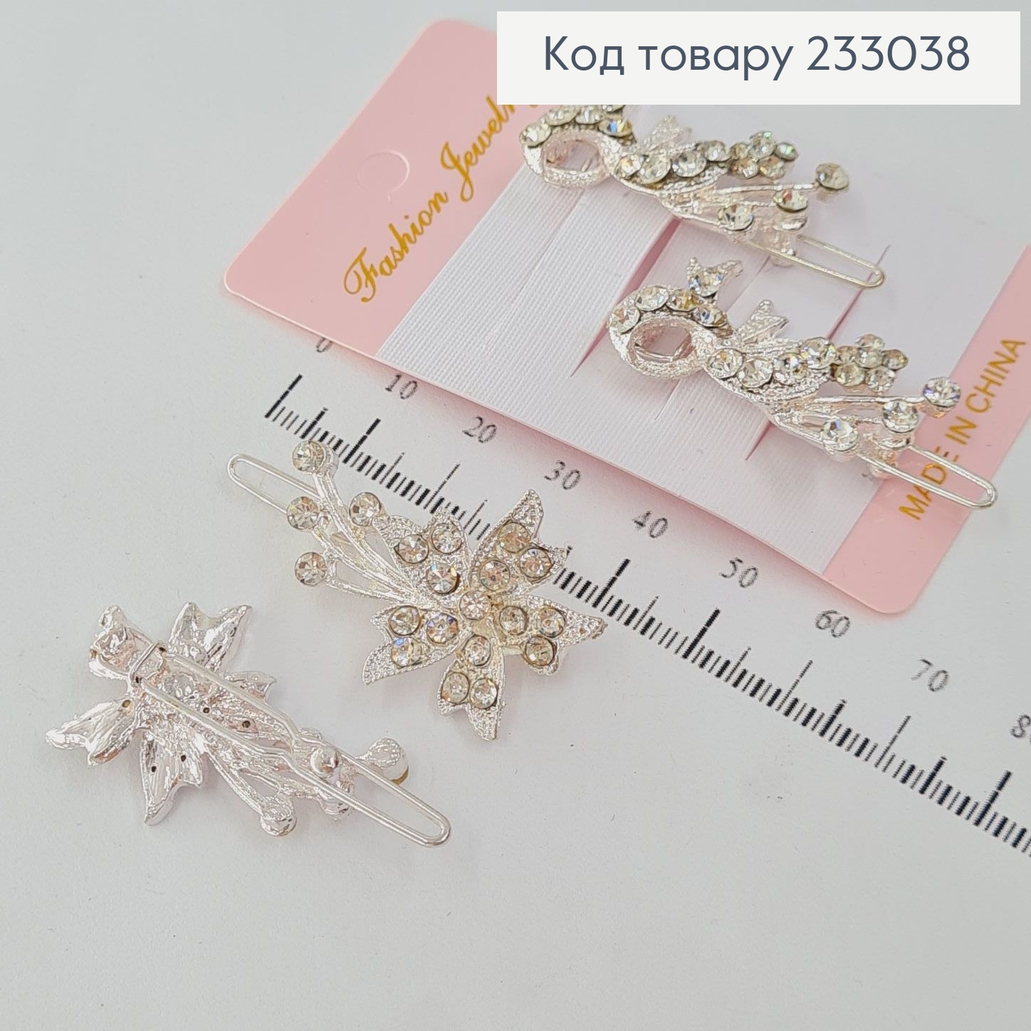 Набор: заколка стрела (2шт/уп), с цветами, бусинами и камнями, 5см, Цвета в ассортименте 224175 фото