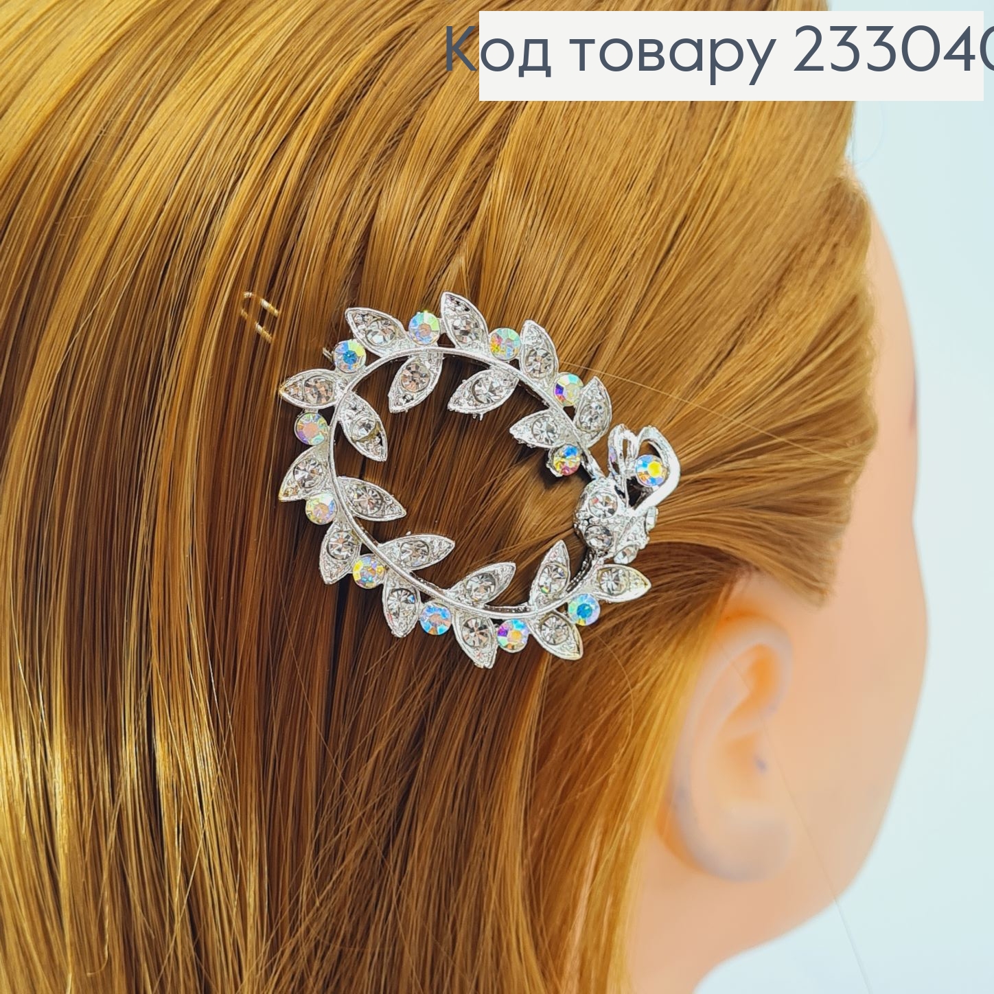 Заколка стрела металл украшена блестящими и черными камешками, серебряного цвета, 12,5см. 224163 фото