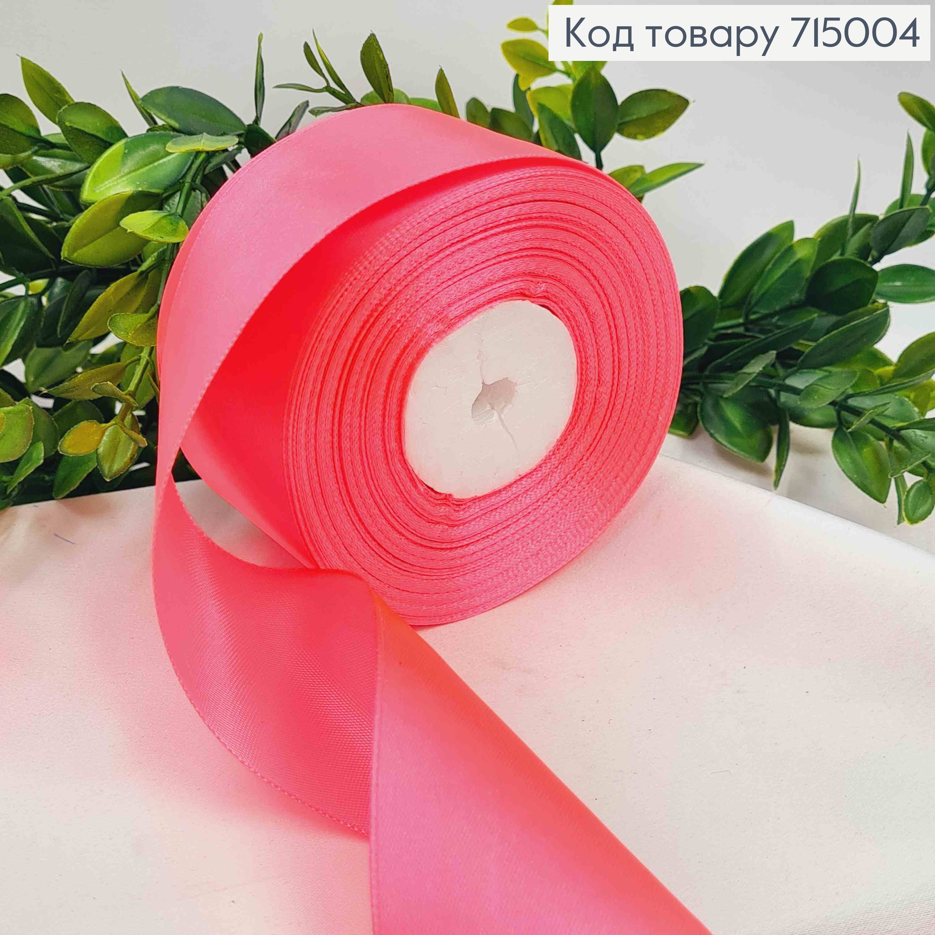 Лента атласная ЯРКО-РОЗОВАЯ (цвет 43), ширина 5см, длина 36 ярдов (33м)) 715065 фото
