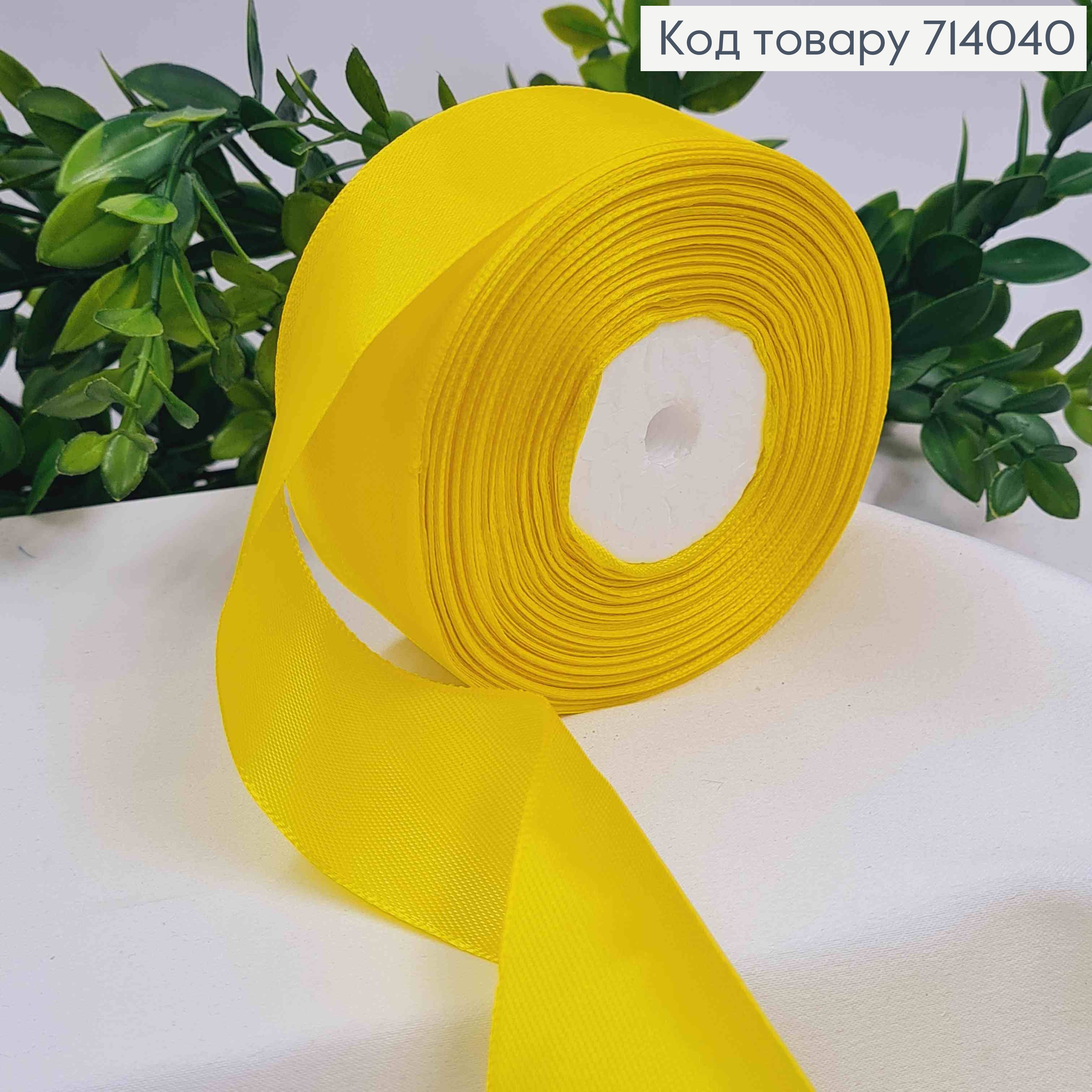 Лента атласная ЯРКО-ЖЕЛТАЯ (цвет 015), ширина 4см, длина 36 ярдов (33м)