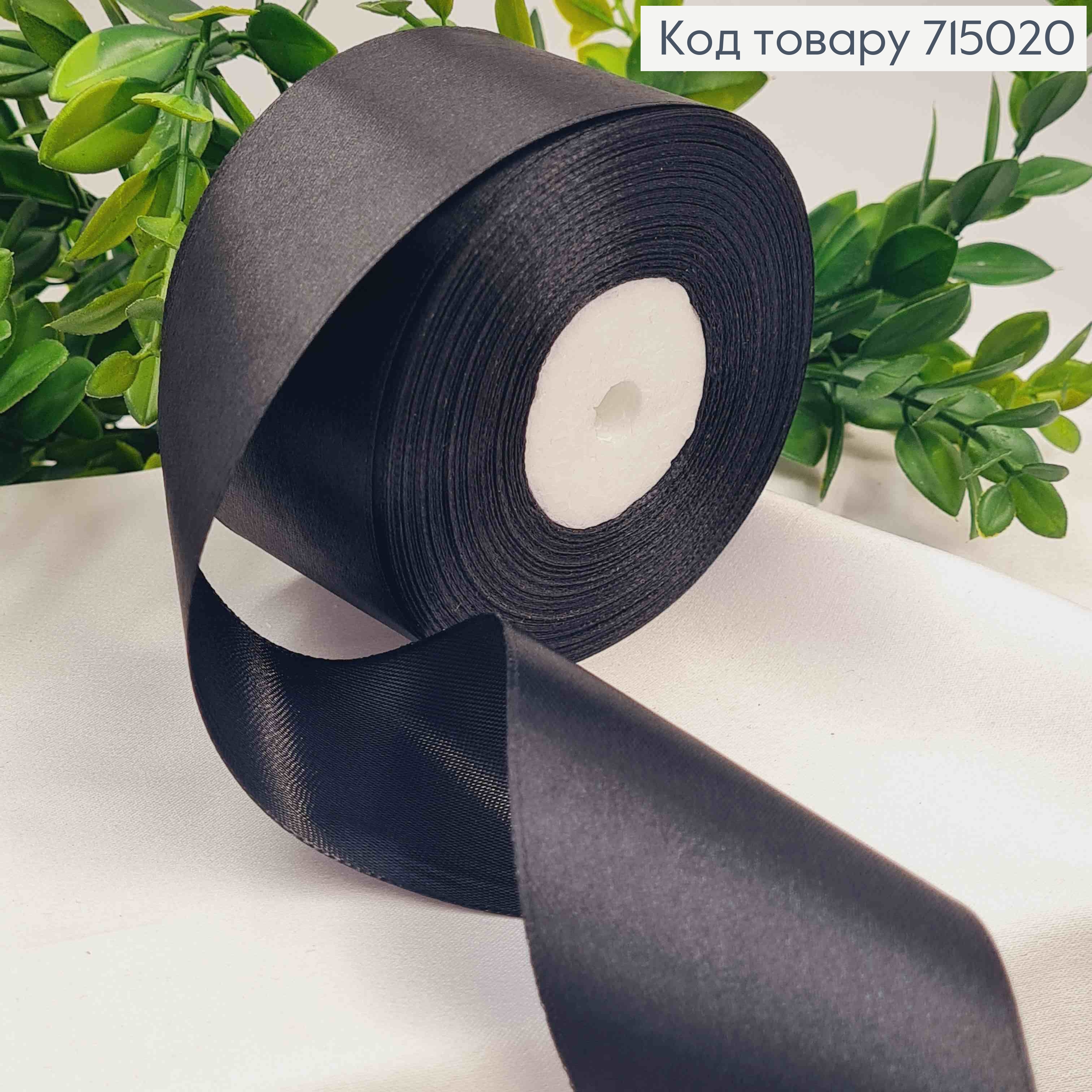 Лента атласная ЧЕРНАЯ (цвет 039), ширина 5см, длина 36 ярдов (33м)