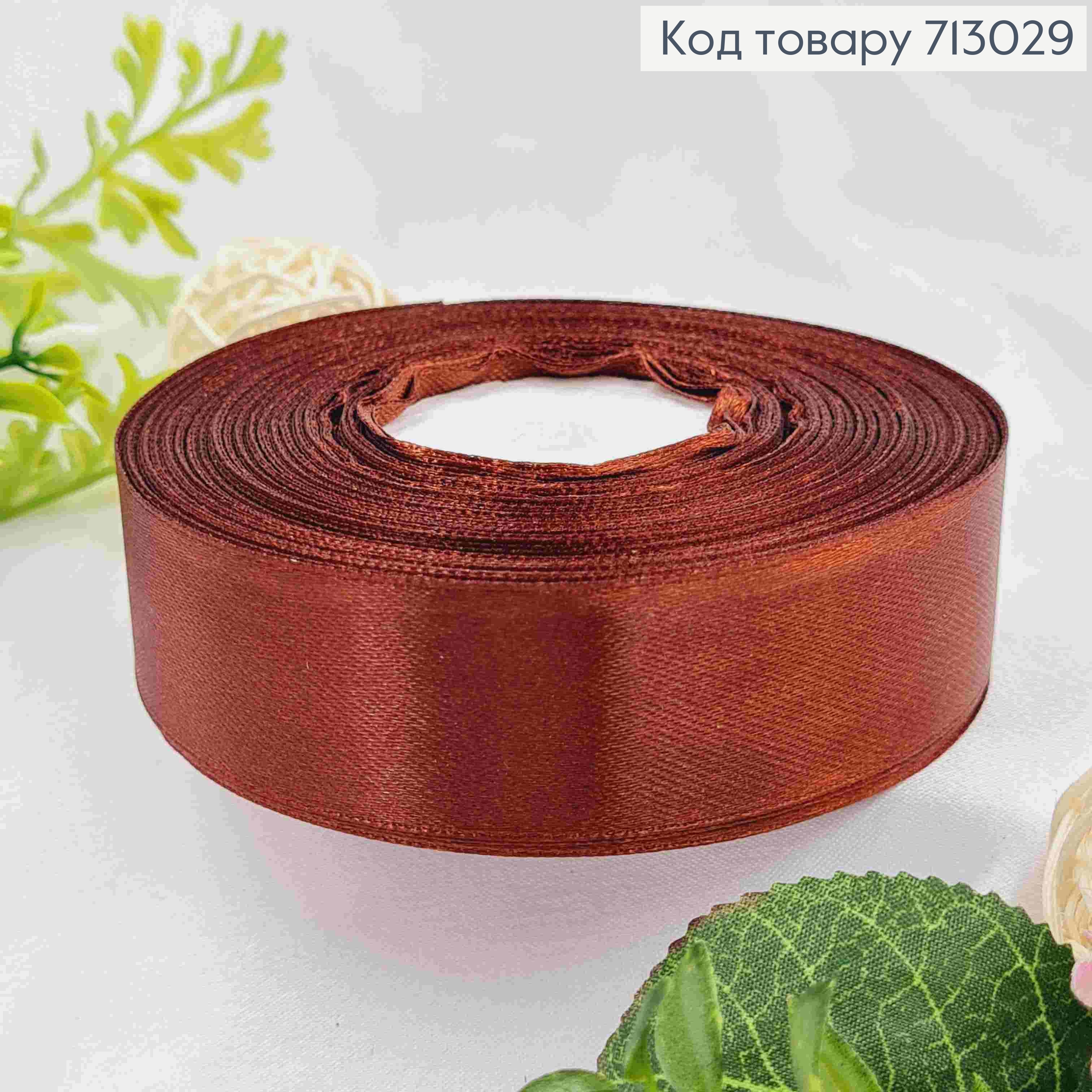 Лента атласная КАШТАНОВОГО цвета (цвет 074), ширина 2,5см, длина 36 ярдов (33м)