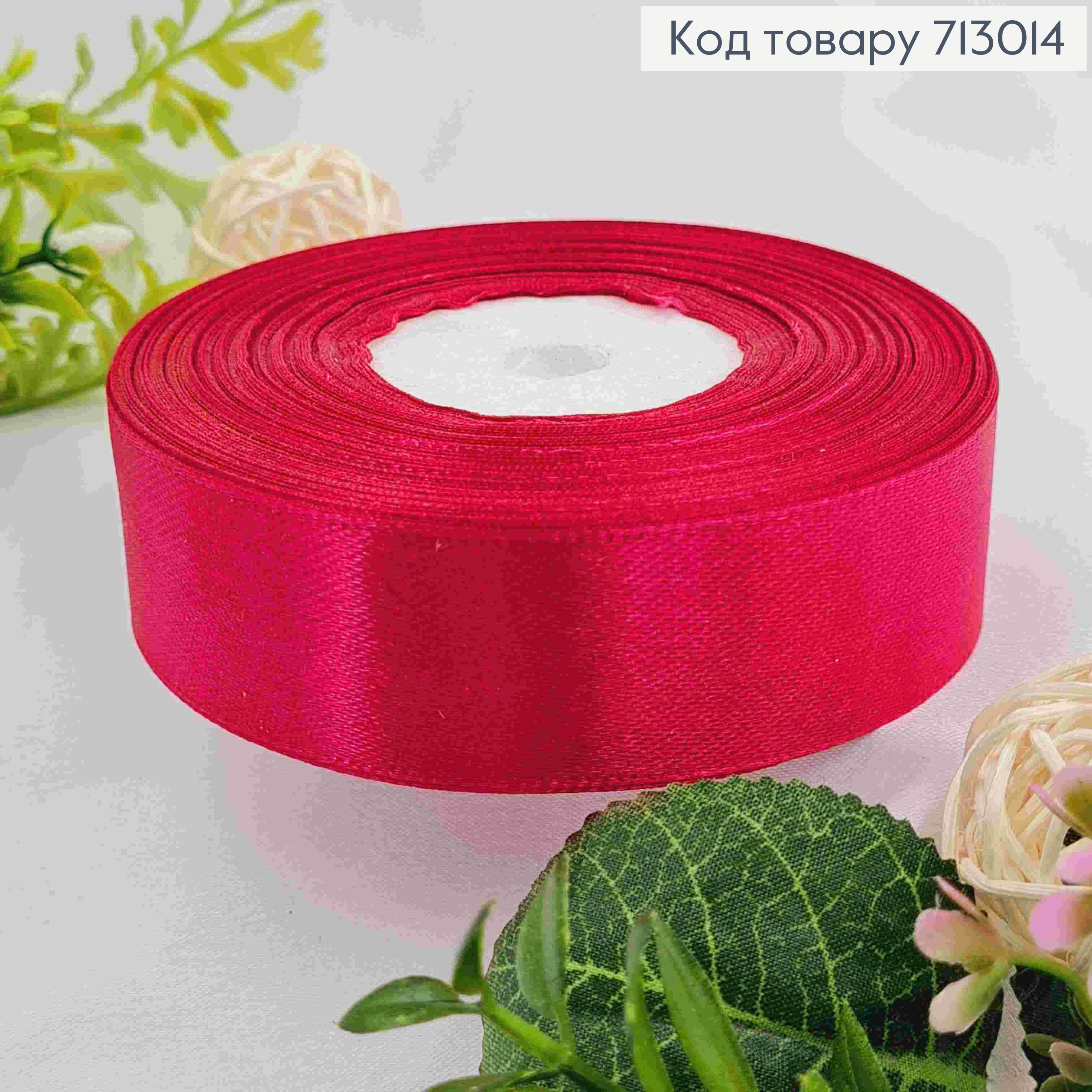 Стрічка атласна МАЛИНОВА (колір 028), ширина 2,5см, довжина 36 ярдів (33м)