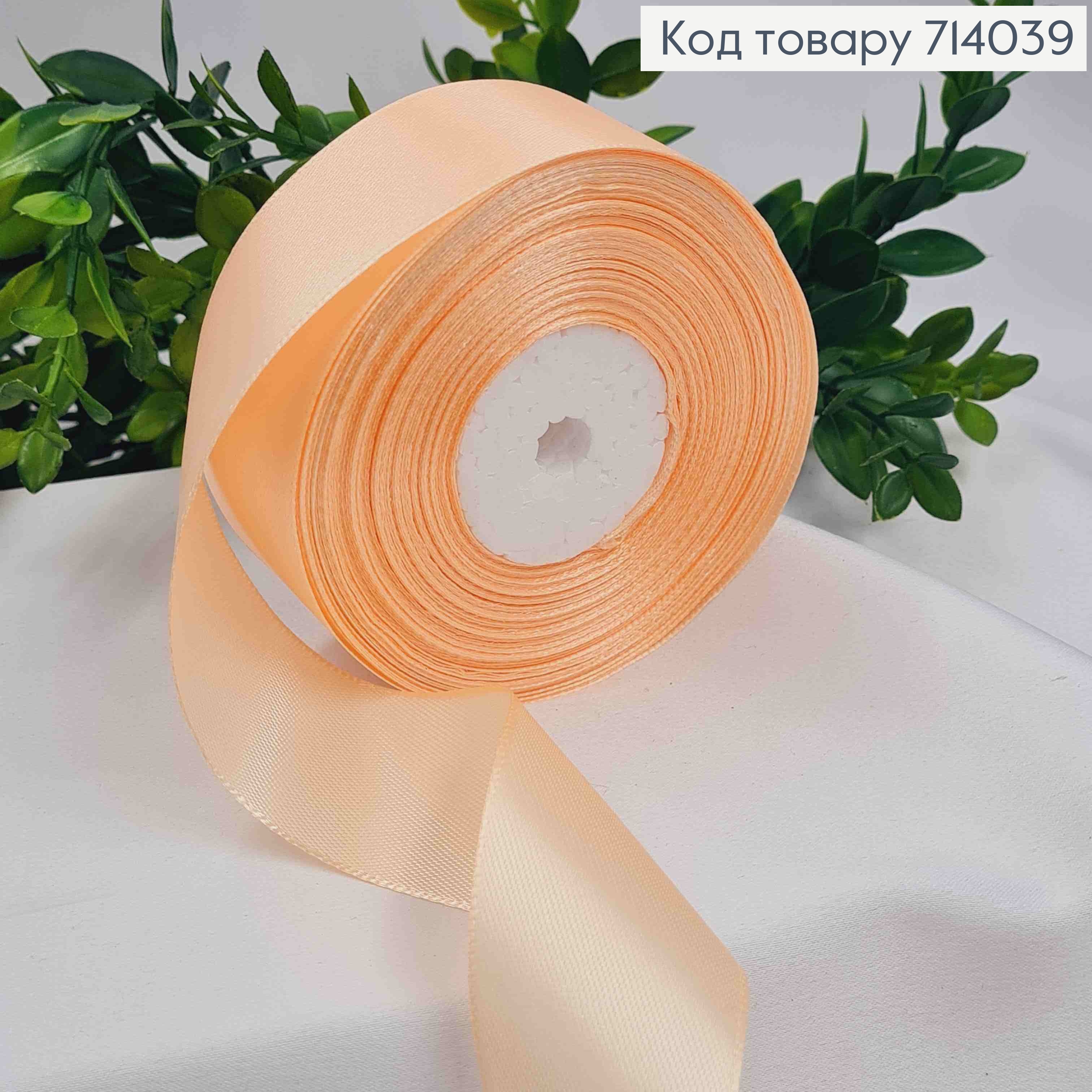 Лента атласная НЕЖНО-ПЕРСИКОВАЯ (цвет 06), ширина 4см, длина 36 ярдов (33м) 714072 фото
