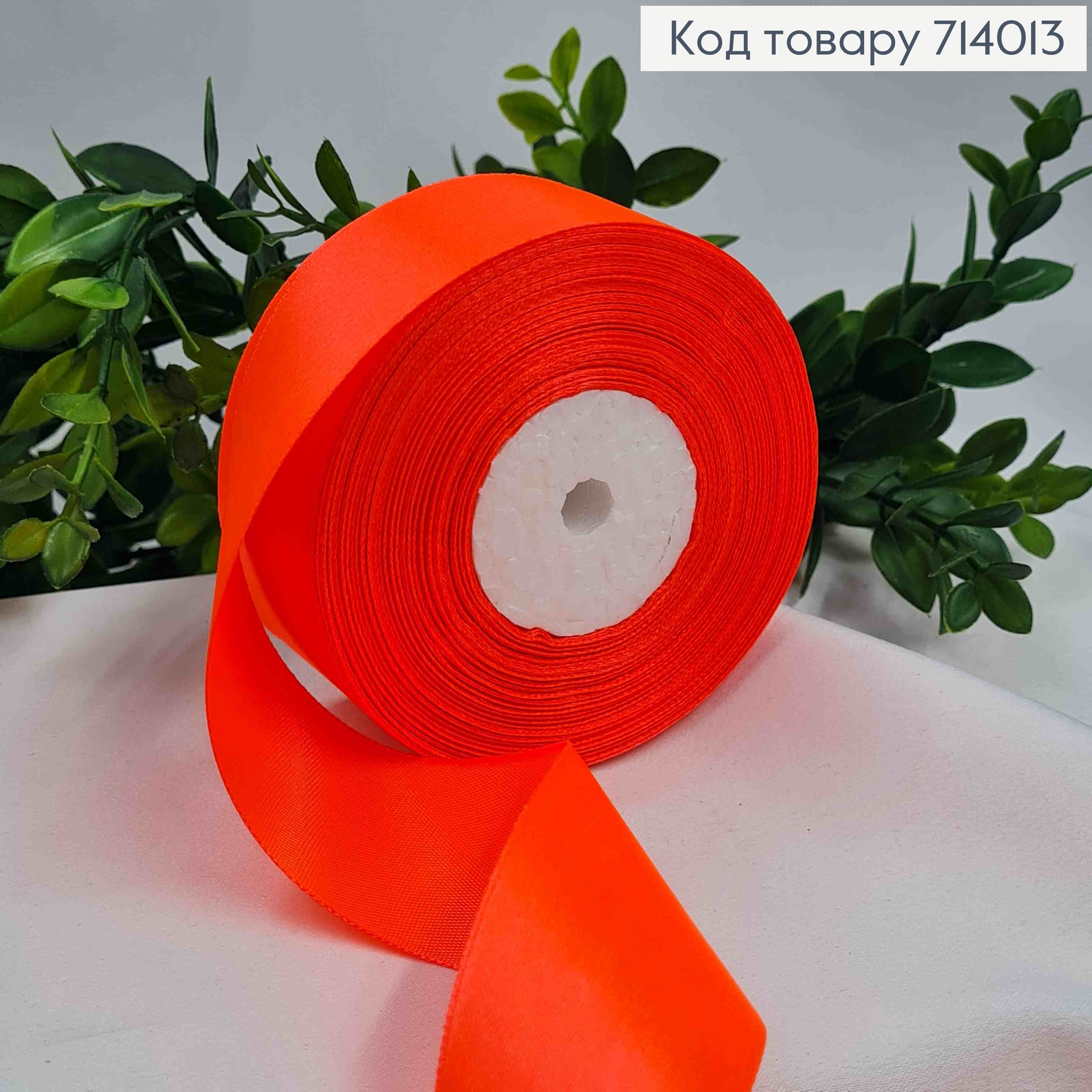 Лента атласная ОРАНЖЕВЫЙ НЕОН (цвет 023), ширина 4см, длина 36 ярдов (33м)
