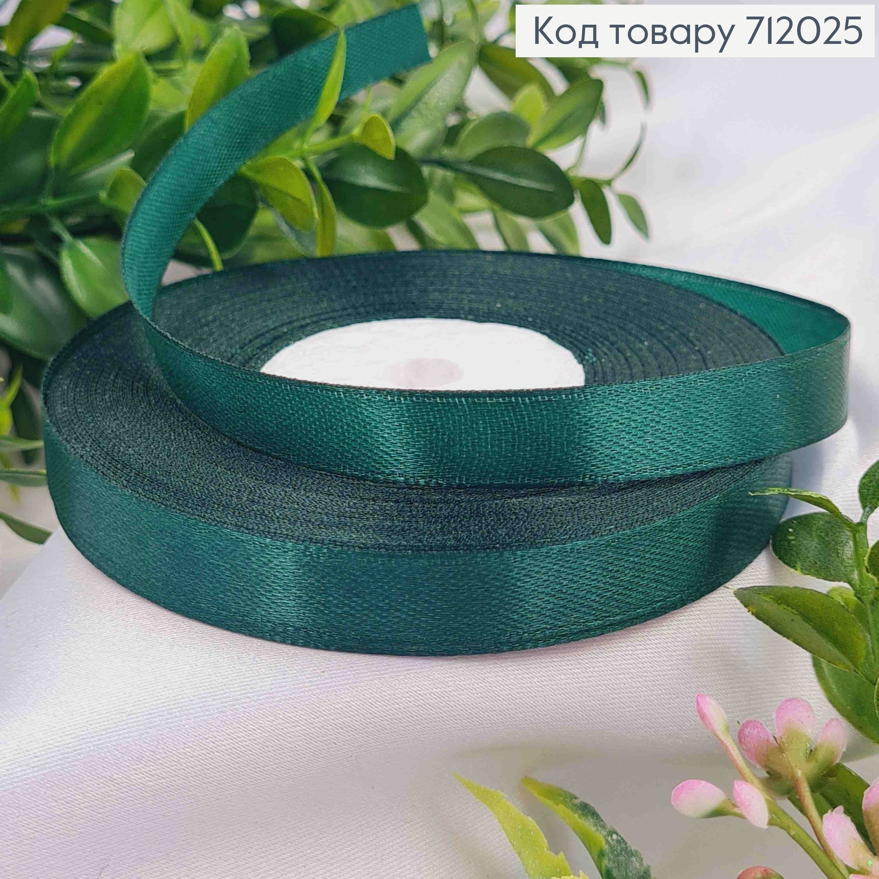 Лента атласная изумрудная (цвет 056), ширина 0,9см, длина 36 ярдов (33м)