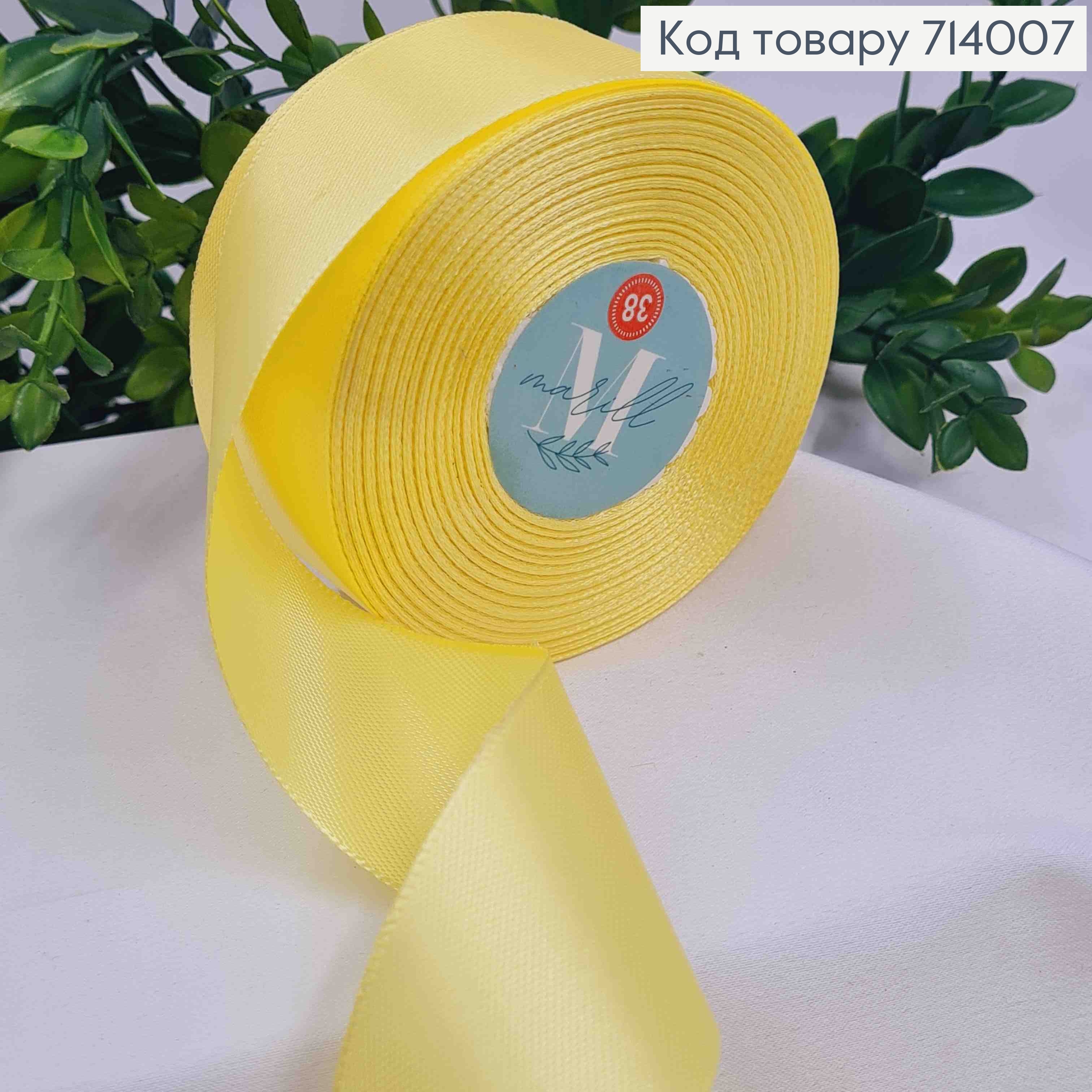 Лента атласная ЖЕЛТАЯ (цвет 010), ширина 4см, длина 36 ярдов (33м)