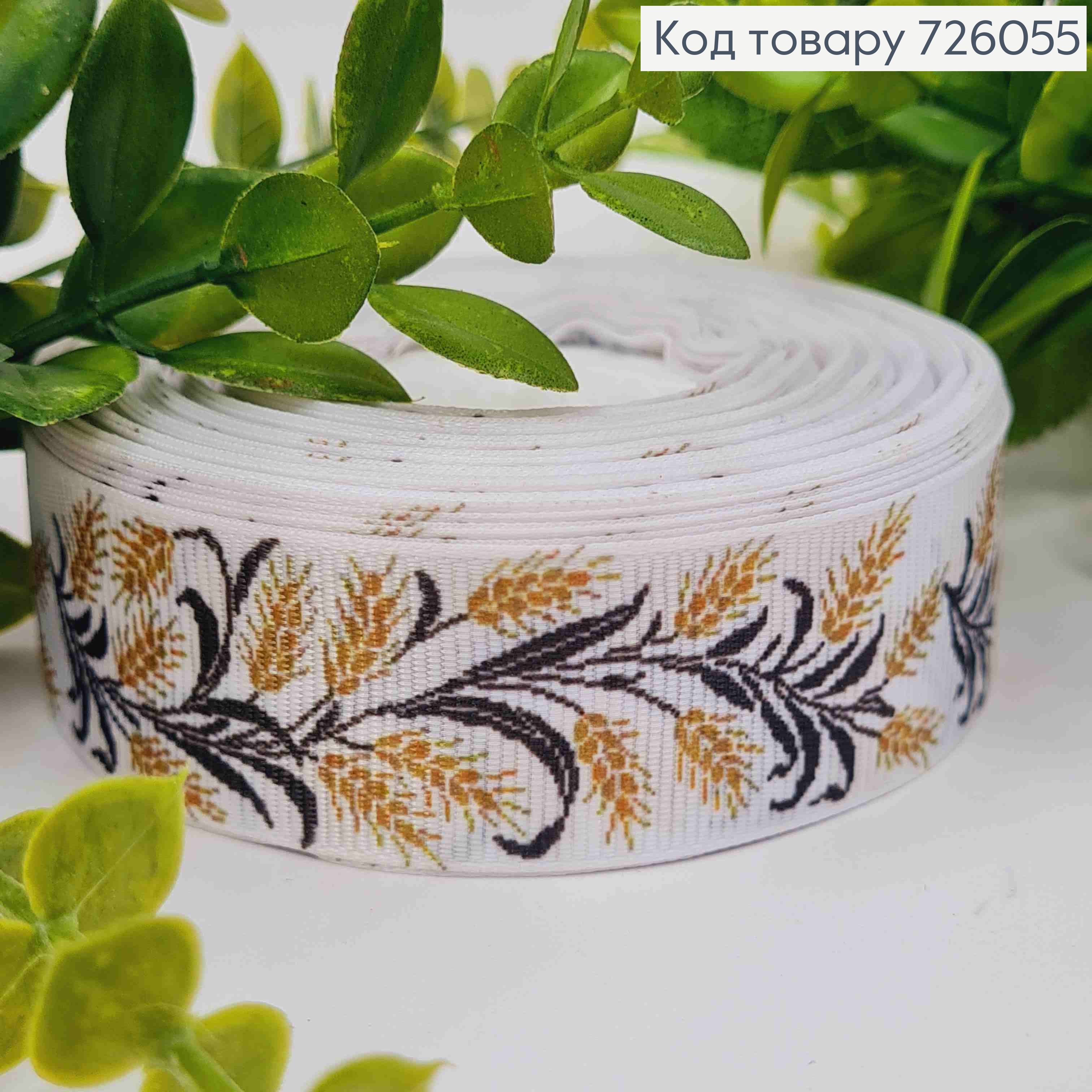 Лента репсовая, БЕЛАЯ с принтом "Колоски", ширина 2,5см, длина 25 ярдов (23м)