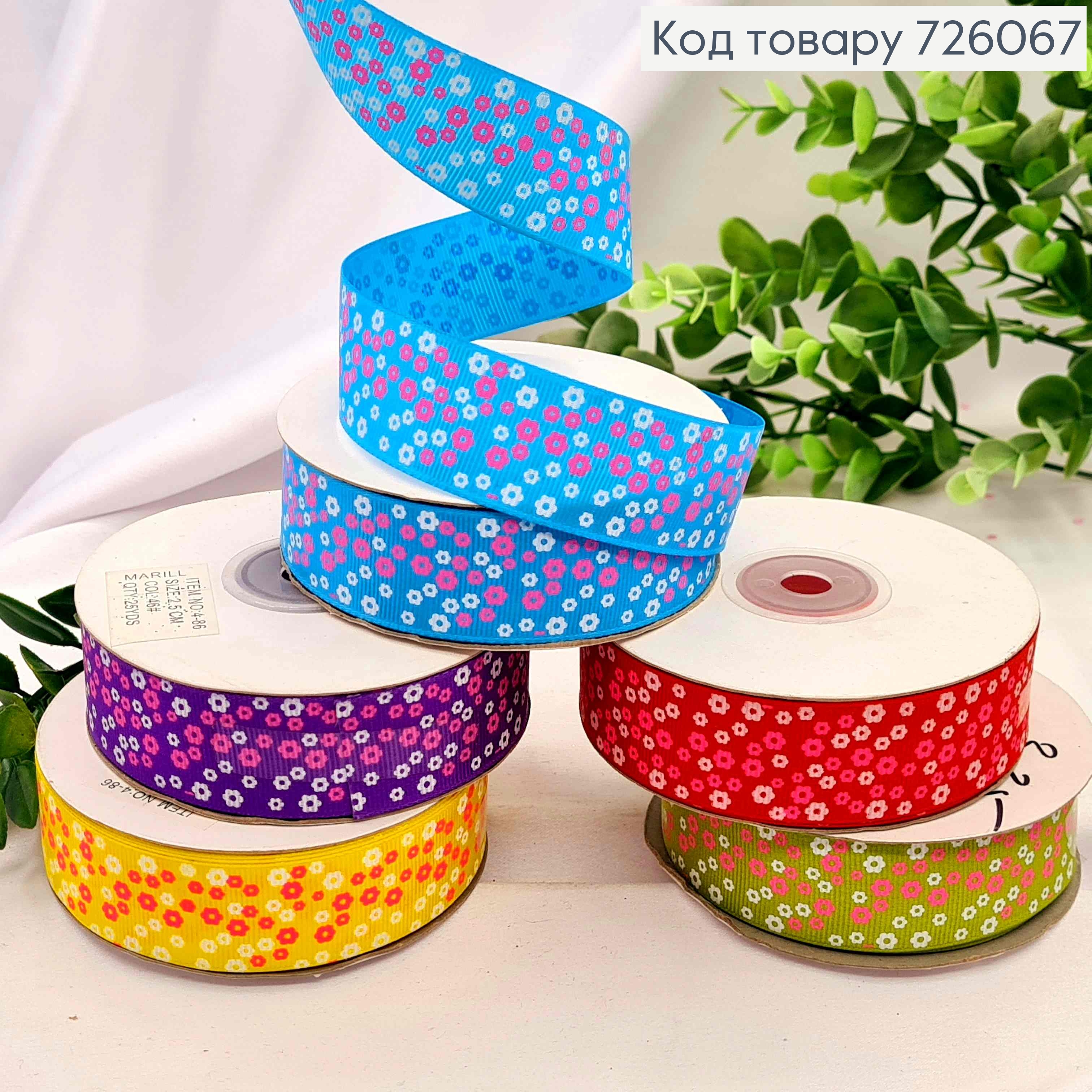 Лента репсовая, с принтом "Цветочки", ширина 2,5см, длина 25 ярдов (23м) 726062 фото
