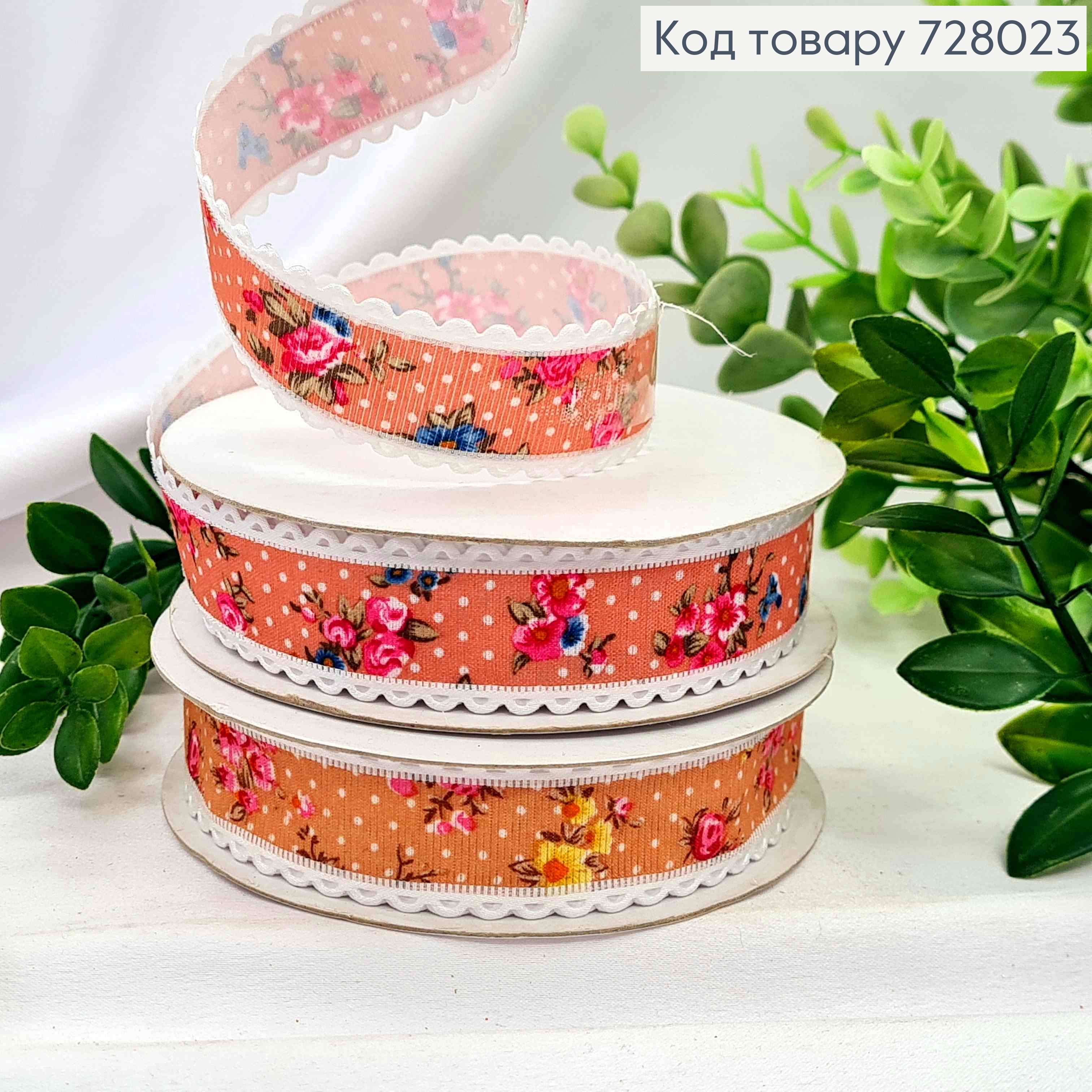 Лента репсовая, с принтом "Цветочки", ширина 2,5см, длина 25 ярдов (23м) 726062 фото