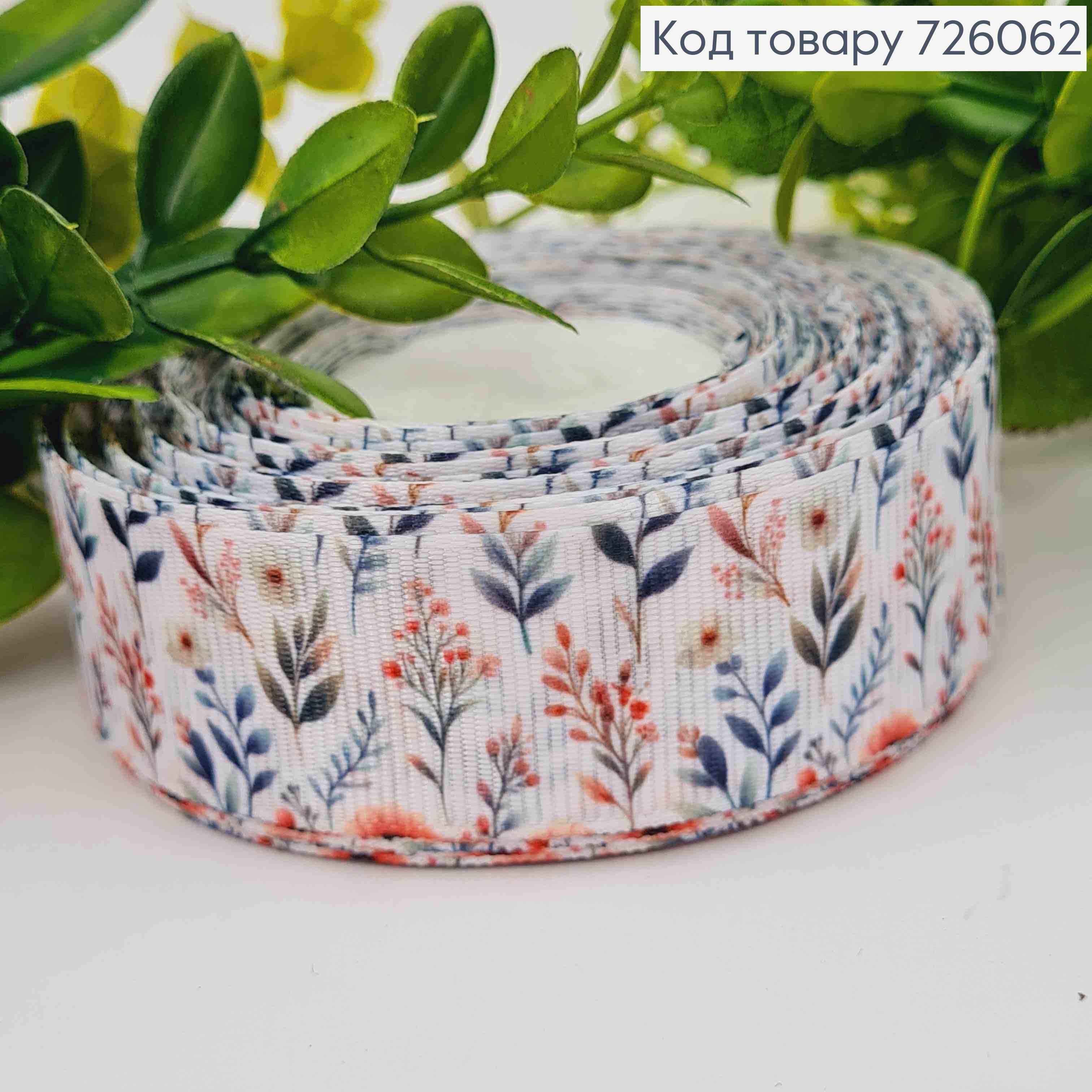 Лента репсовая, Цвета в ассортименте с принтом "Цветы", ширина 2,5см, длина 25 ярдов (23м) 726067 фото