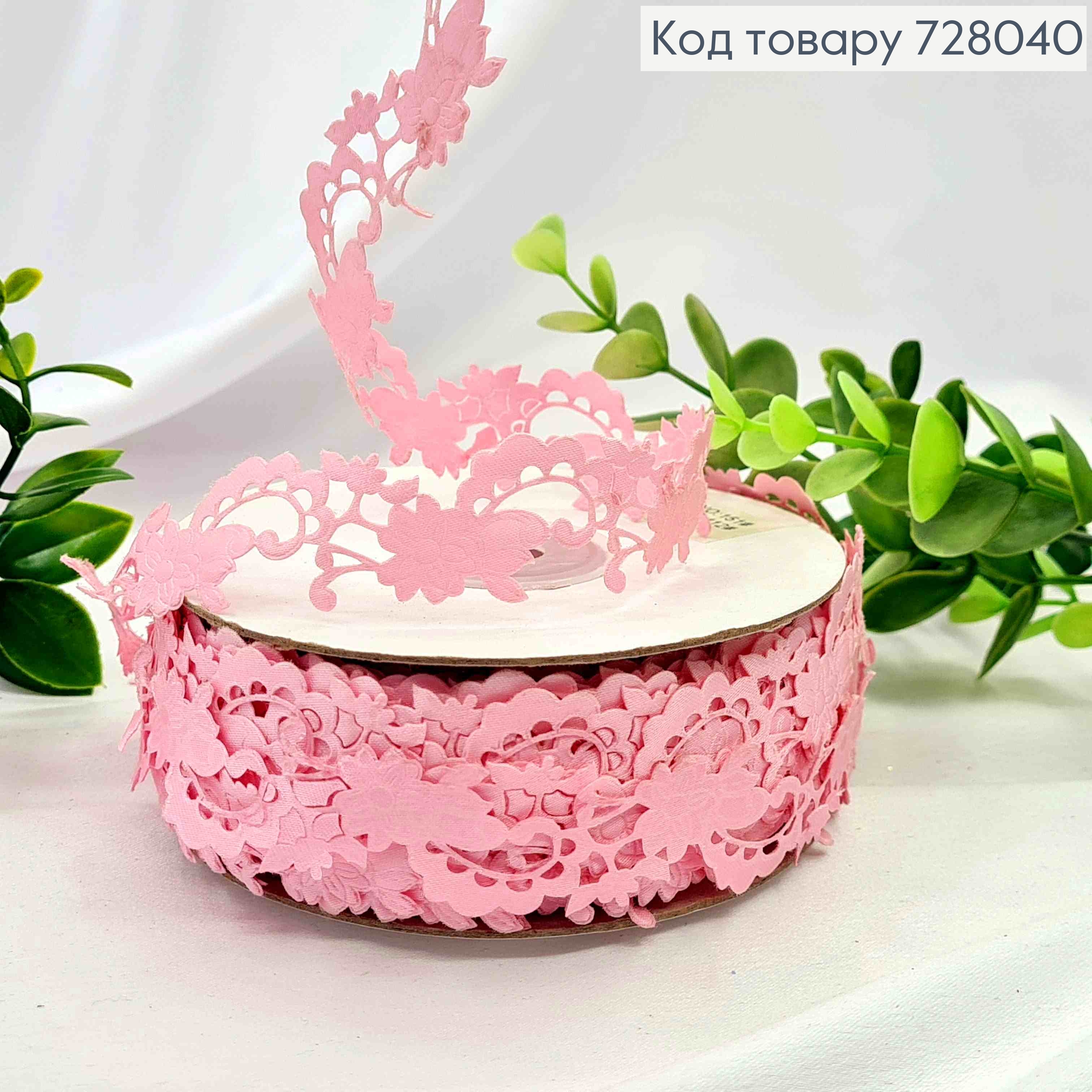 Лента-тесьма декоративная, РОЗОВОГО цвета, ширина 2см, длина 20 метров