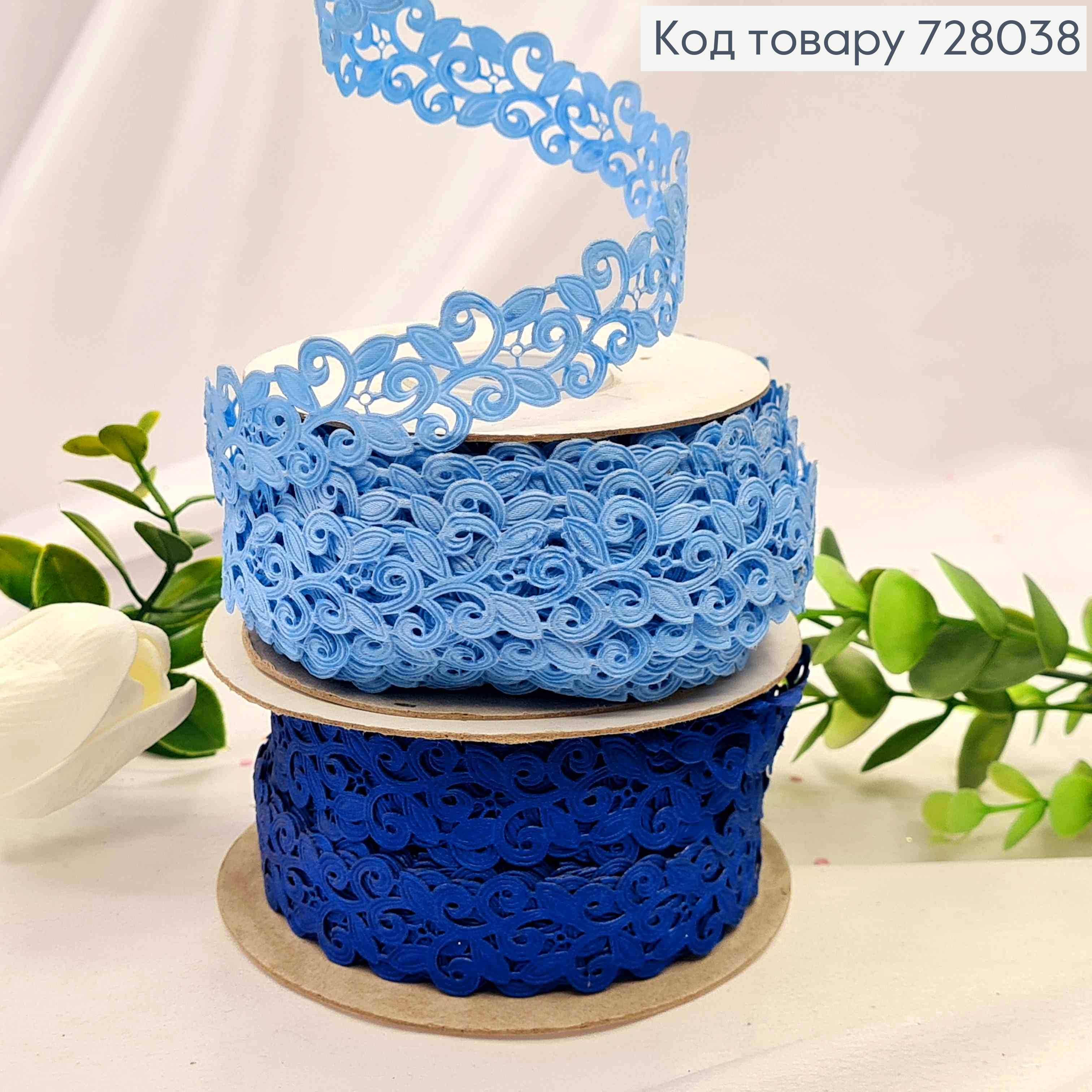 Лента-тесьма декоративная, синего/голубого цвета в ассортименте, ширина 2см, длина 20 метров