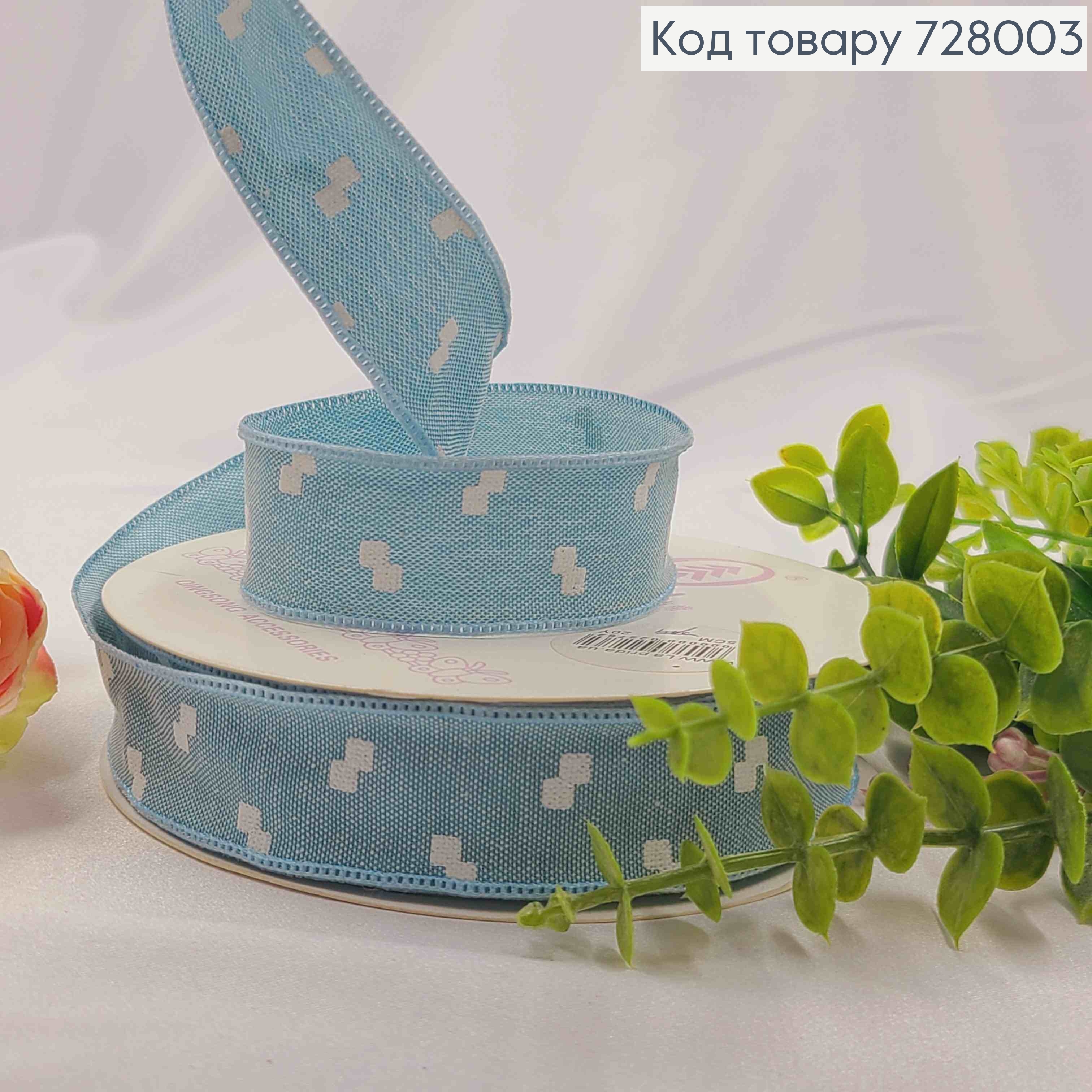 Лента тканевая ГОЛУБЕВАЯ с принтом КВАДРАТИК, ширина 2,5см, длина 20 ярдов (18м)