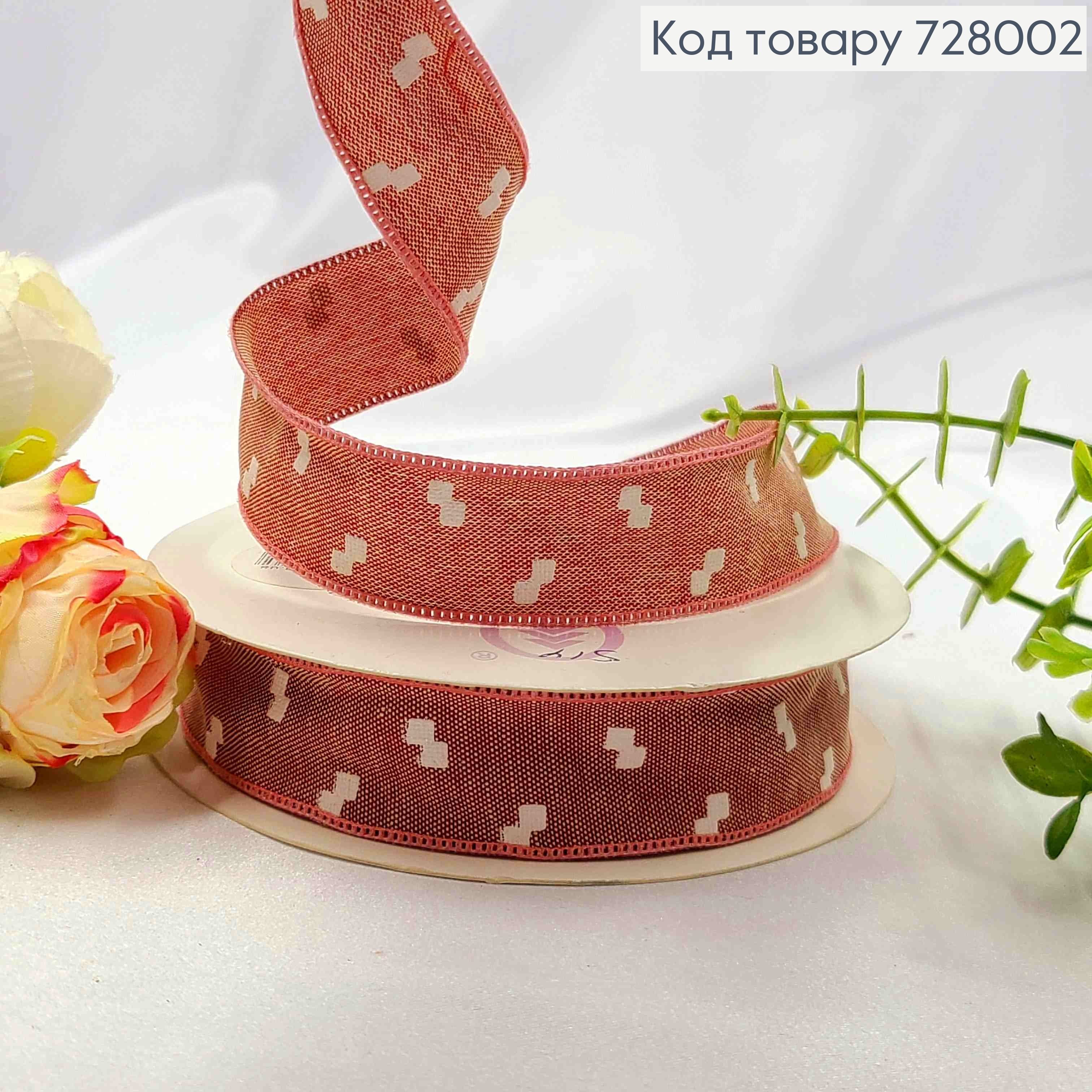 Лента тканевая ГРУЗНО-КРАСНАЯ с принтом КВАДРАТИК, ширина 2,5см, длина 20 ярдов (18м)