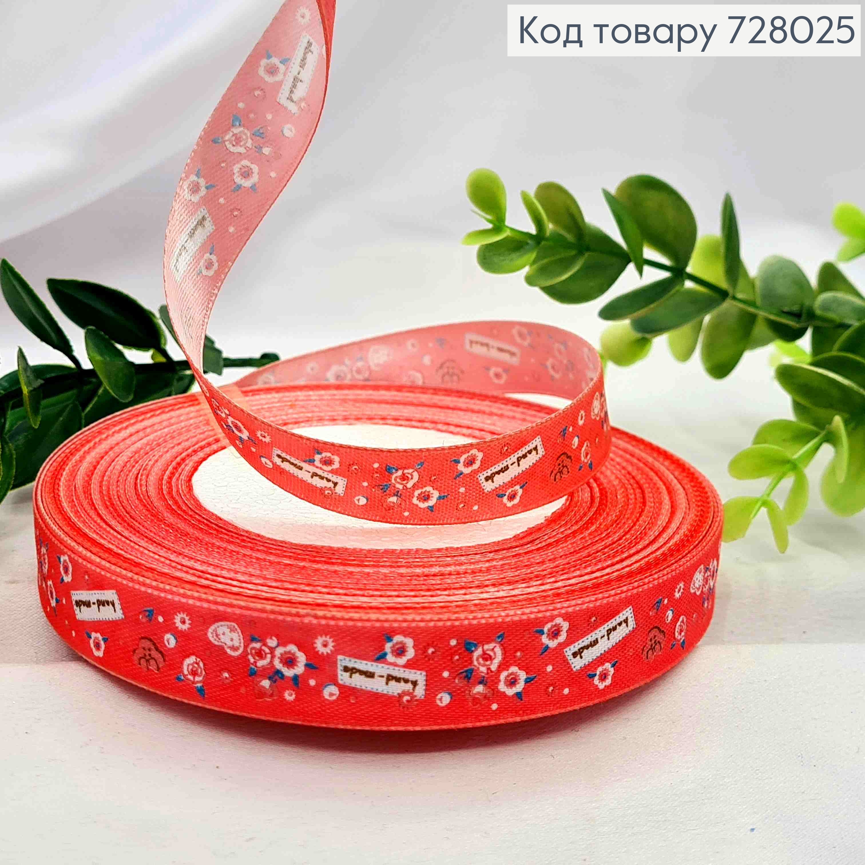 Лента тканевая, Розовая с принтом "Цветы", ширина 1,5см, длина 20 ярдов (18м)