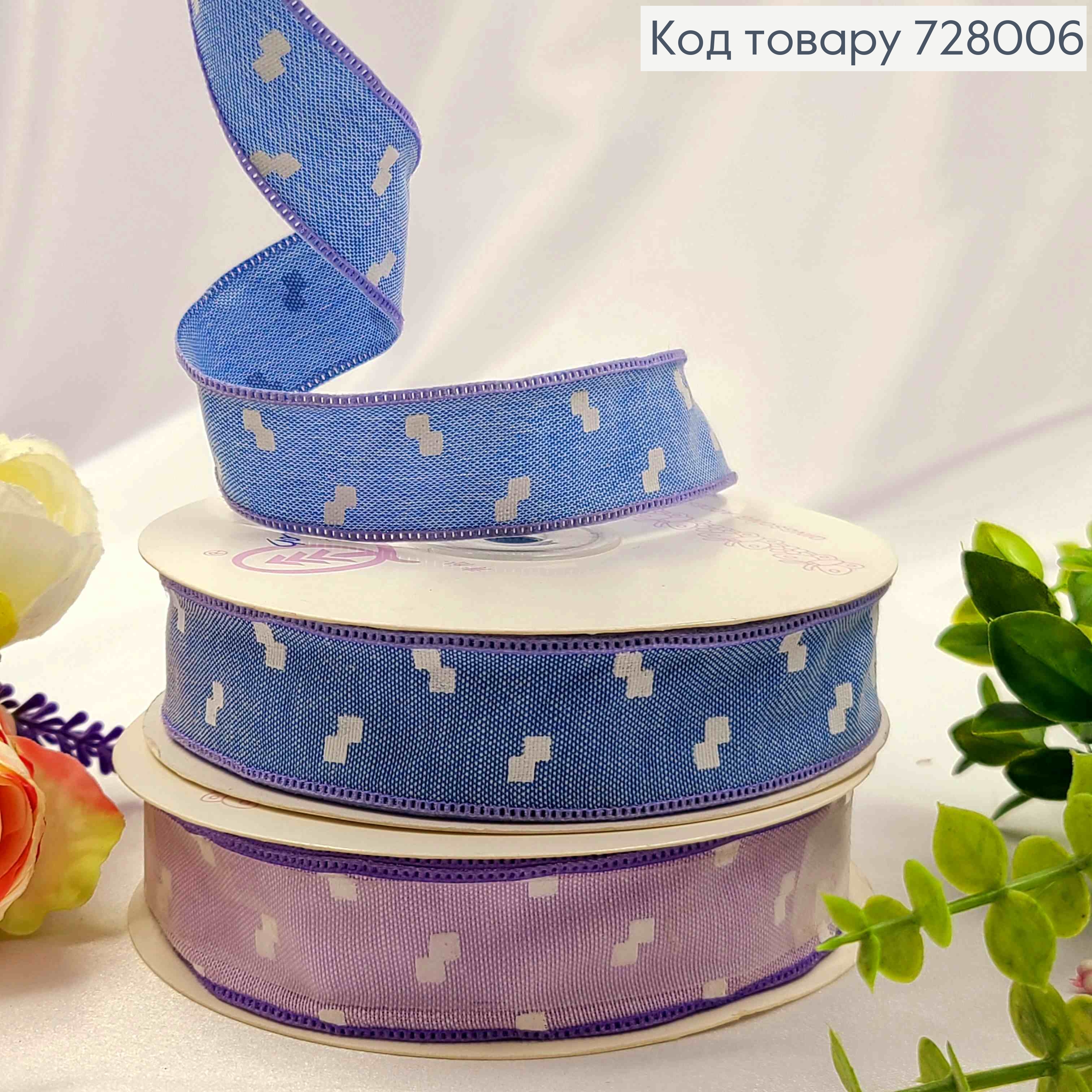 Лента тканевая СИНЯЯ/СИРЕНЕВАЯ с принтом КВАДРАТИК, ширина 2,5см, длина 20 ярдов (18м)