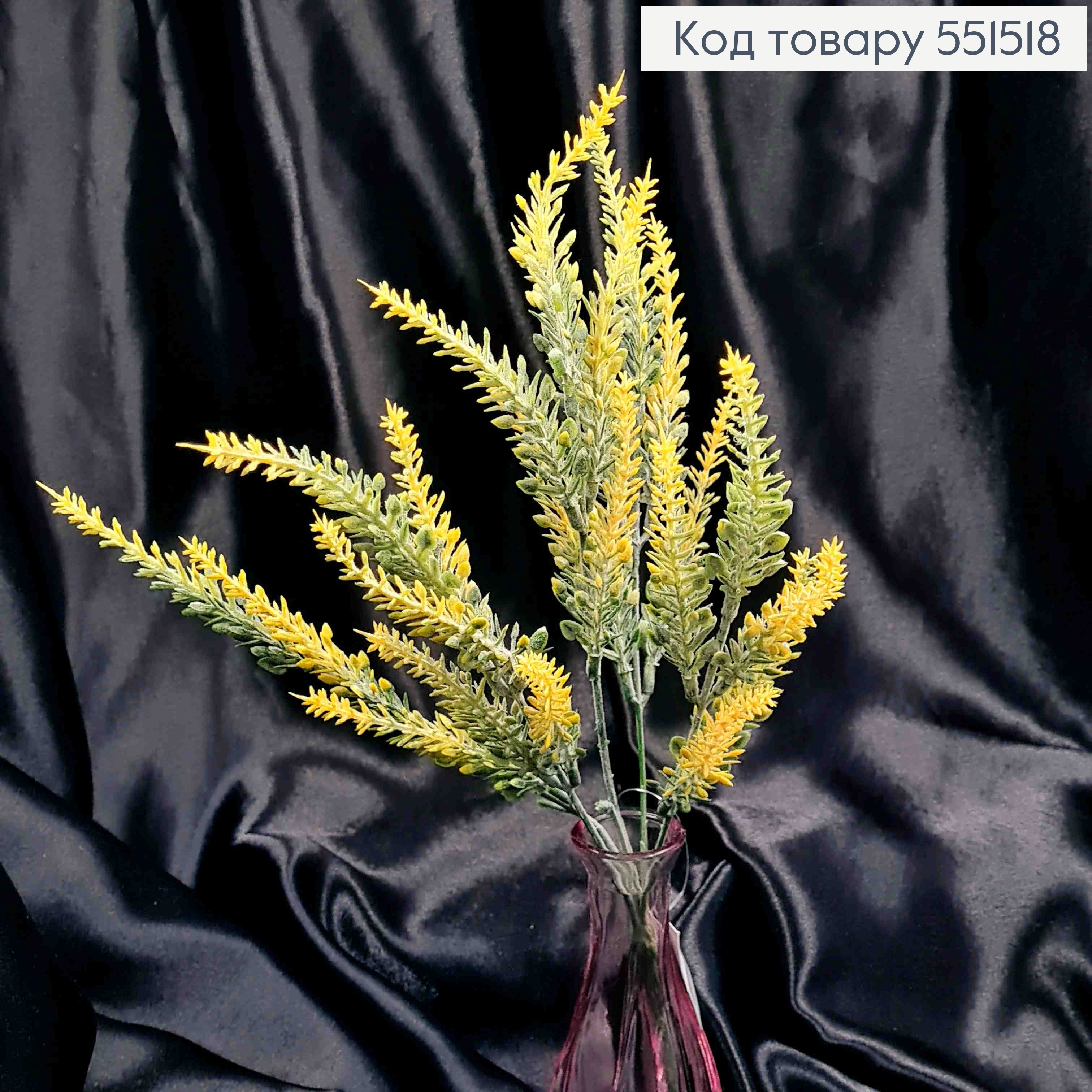 Искусственная декоративная композиция Лаванда, ЖЕЛТОГО цвета, 5 веточек на металлическом стержне, 36см.