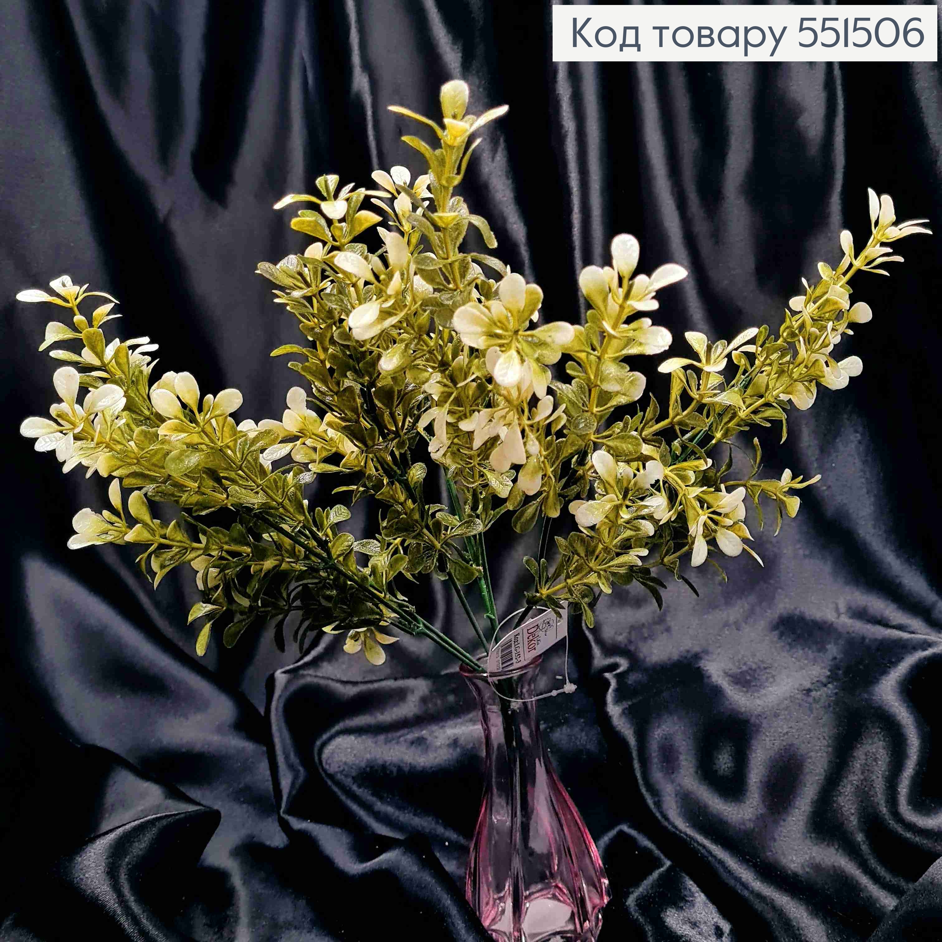 Искусственная декоративная зелень Самшит, БЕЛО-ЗЕЛЕНОГО цвета, 7 веточек на металлическом стержне, 35см.