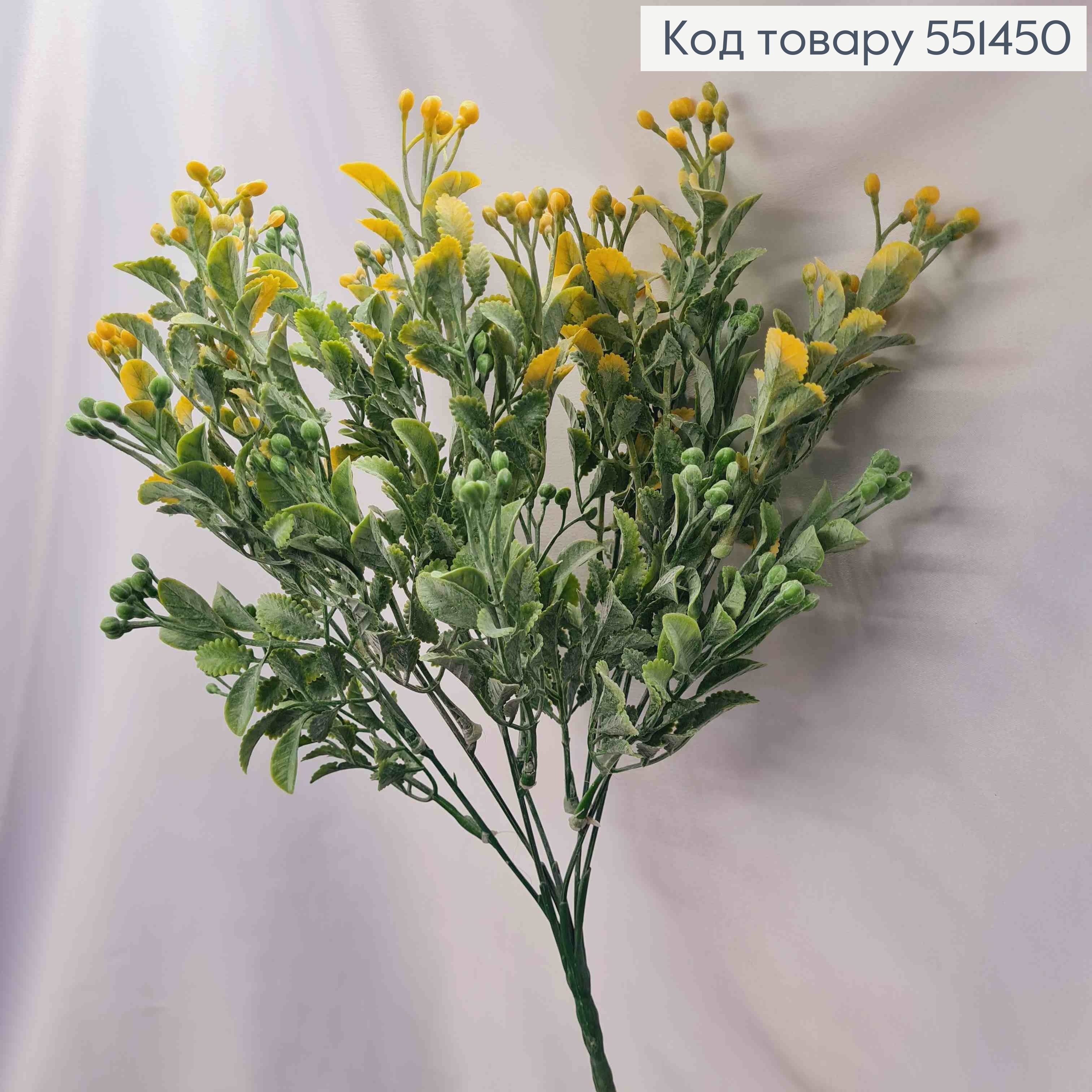 Искусственная композиция Декоративная Зелень с Ягодками, ЖЕЛТО-ЗЕЛЕНАЯ, 7 веток на металл. стержни, 37см