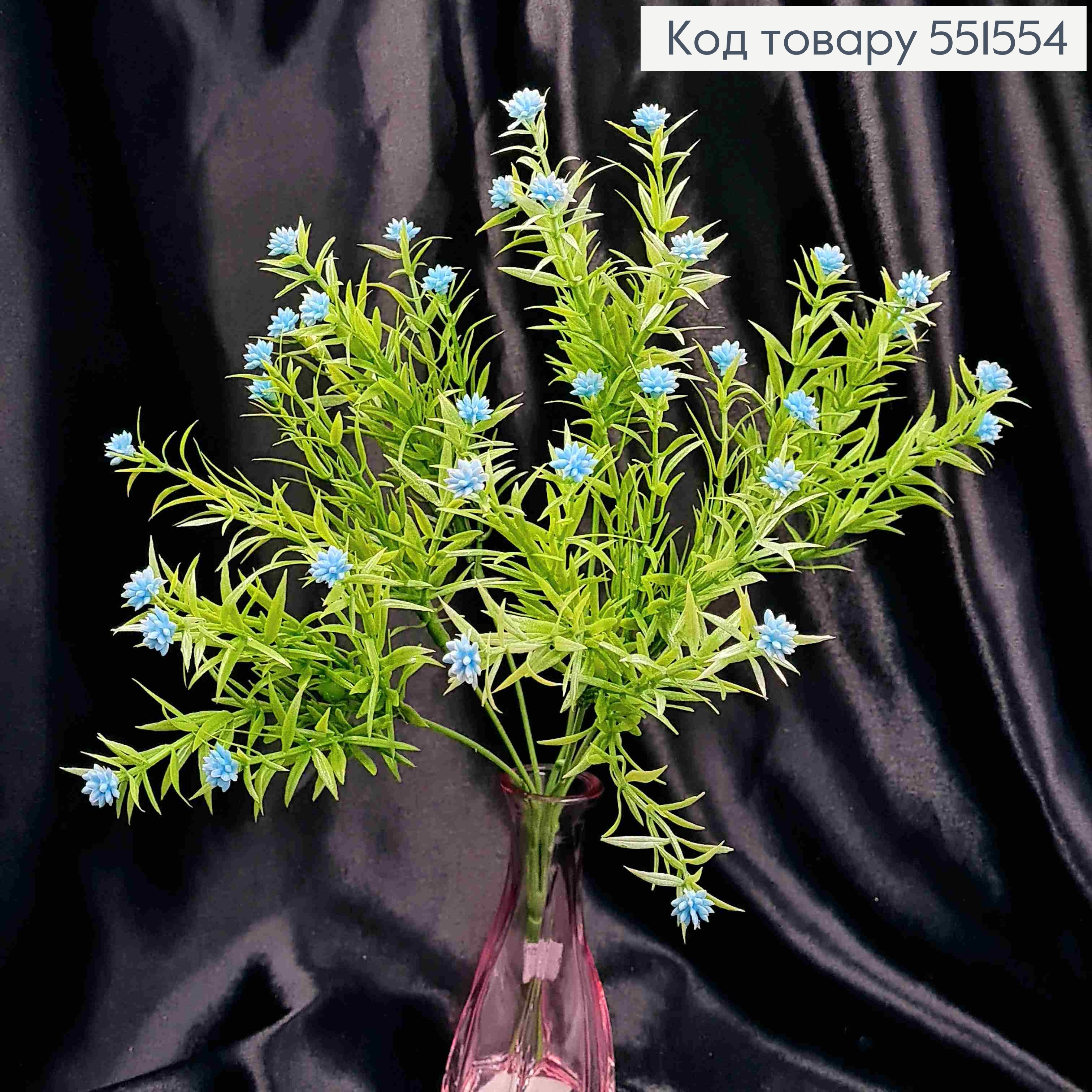 Искусственная композиция Мелкоцвет, ГОЛУБОГО цвета, 7 веточек на металлическом стержне, высота 35см