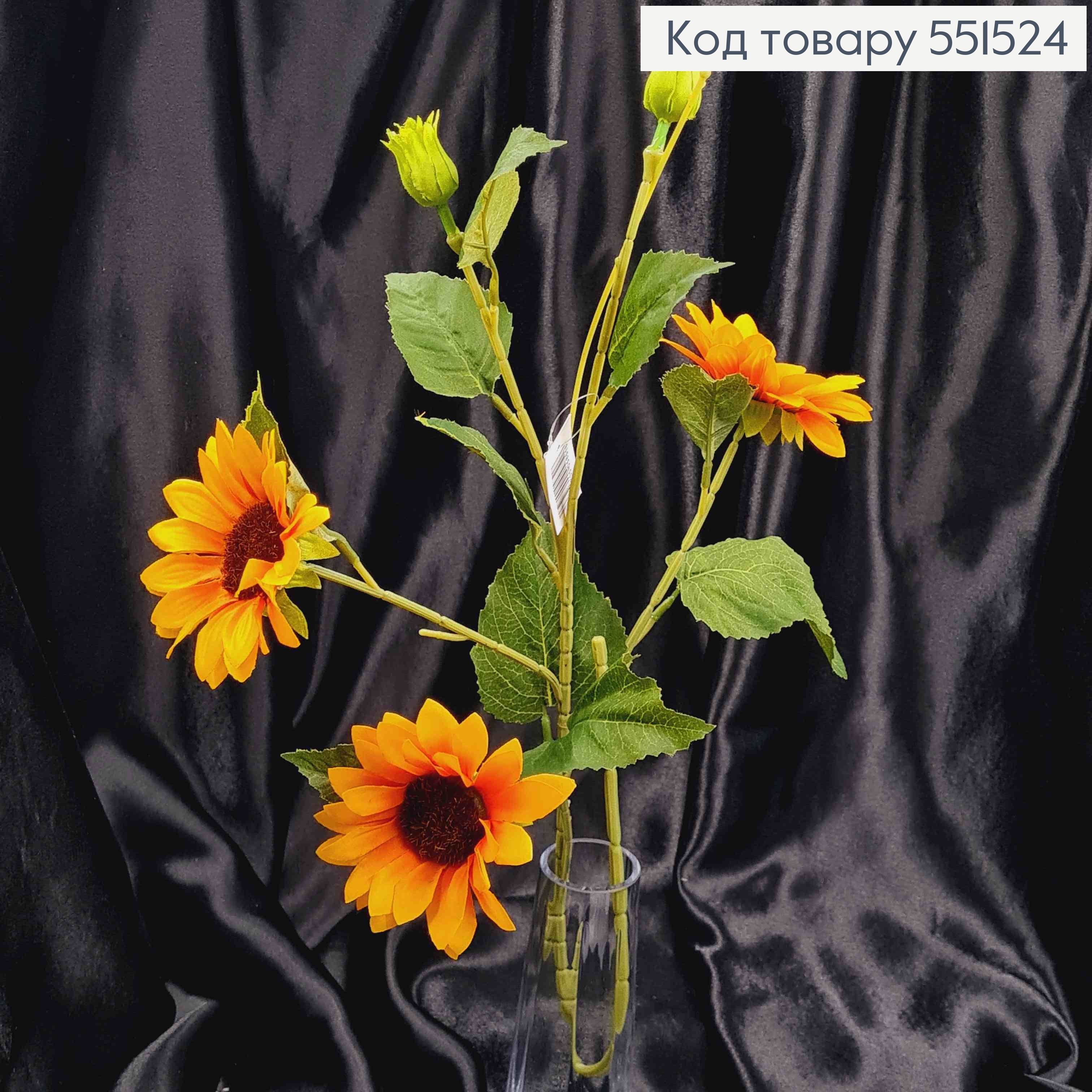 Искусственная композиция Подсолнечник, 3 цветка, 2 бутона, на металлическом стержне, 72см