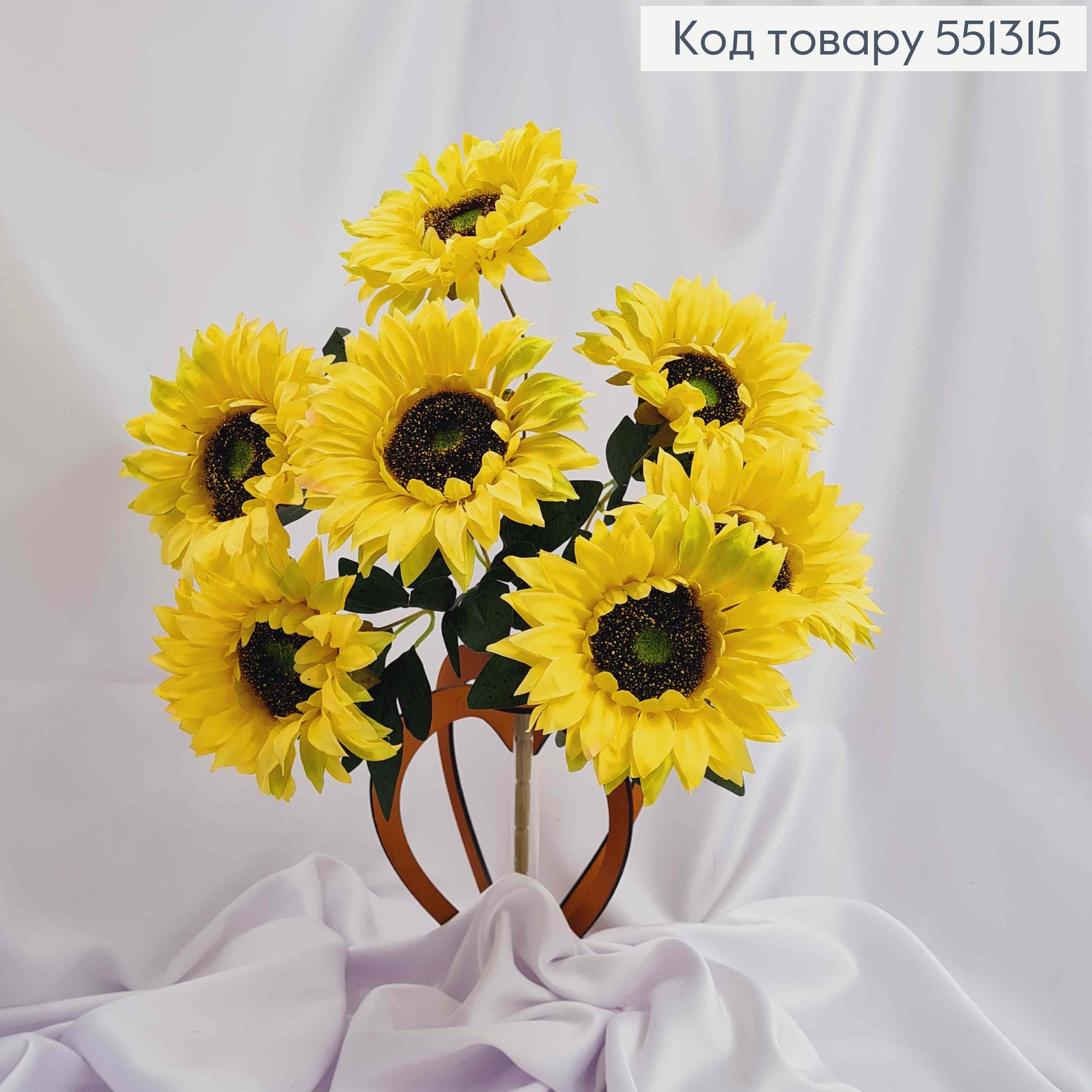 Искусственная композиция ПОДСОЛНЕЧНИКИ, цвет пастельно ЖЕЛТЫЙ, 7 цветочков (по 7см) на металлическом стержне, 42см