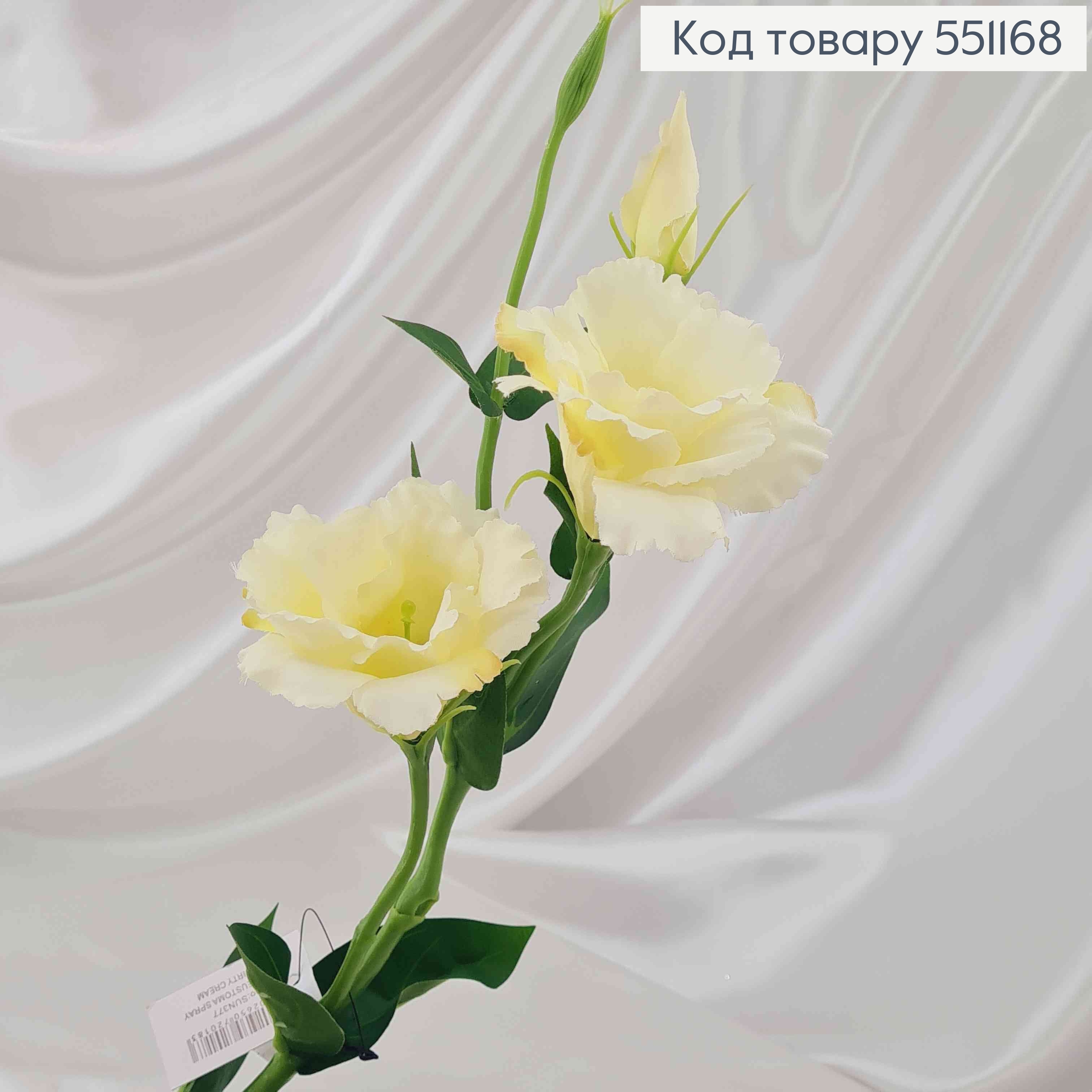 Искусственный цветок Эустомы, МОЛОЧНЫЙ, 2 цветка + 1 бутон, на металлическом стержне, 66см