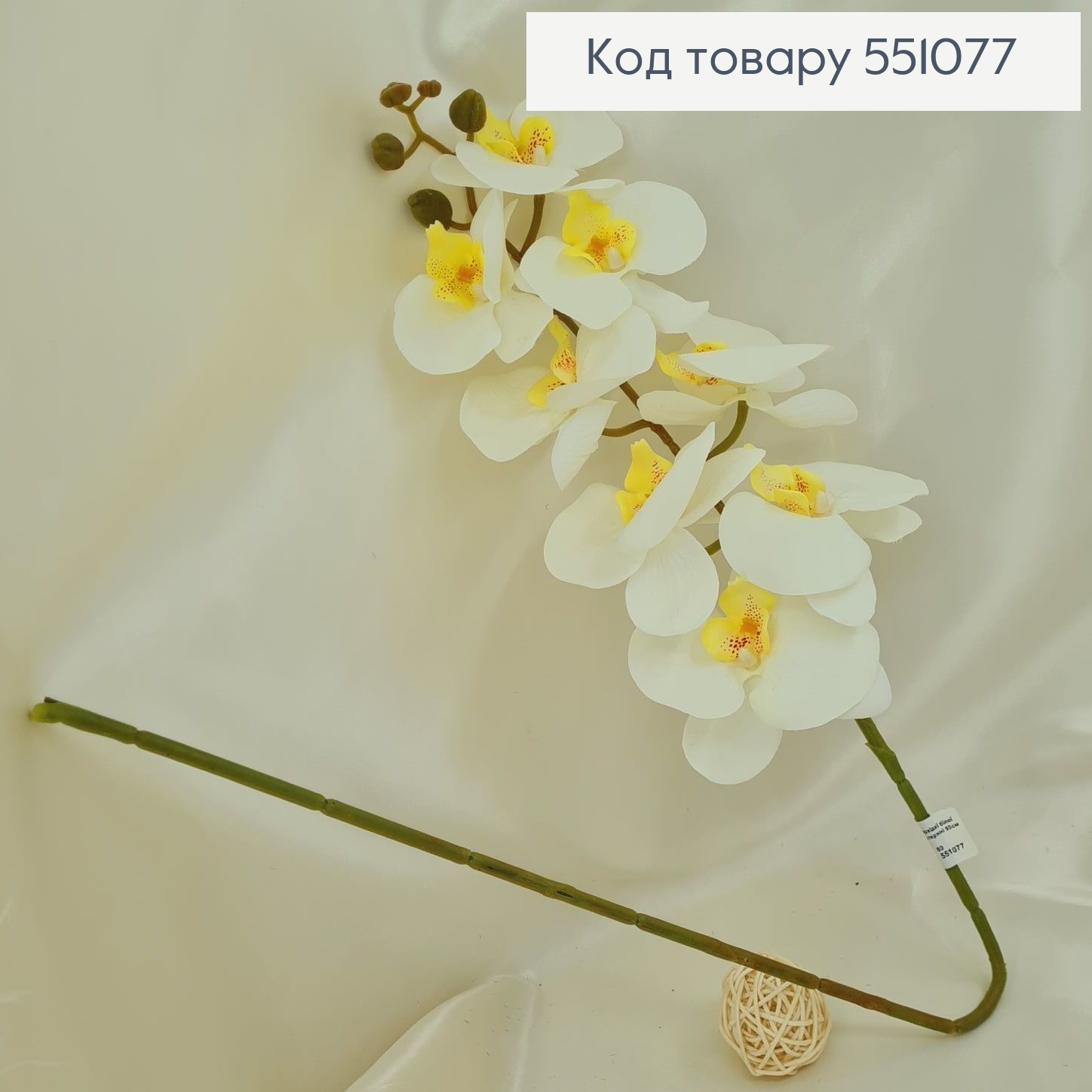 ¶Искусственный цветок орхидеи белой на металлическом стержне 95см.