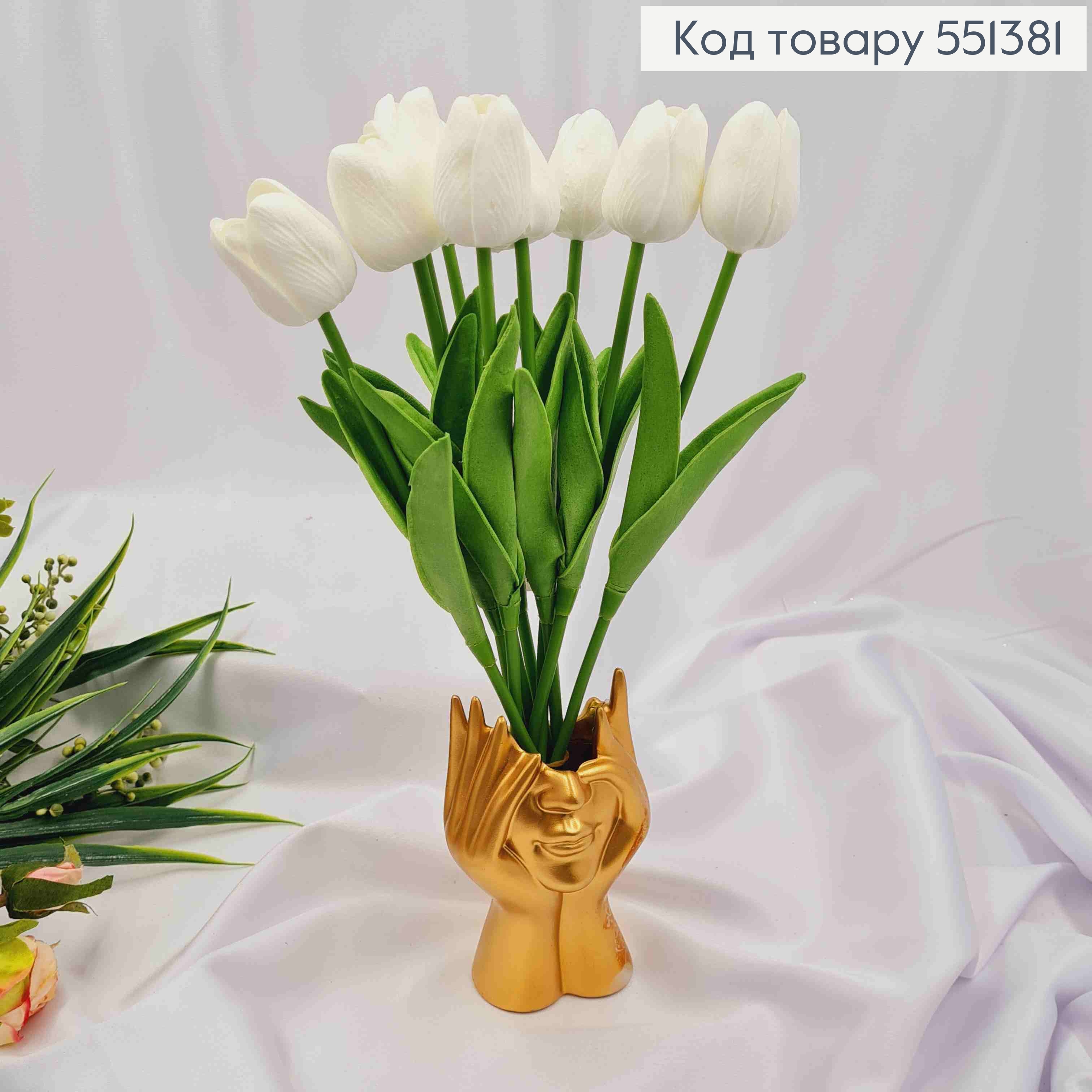 Искусственные цветы ТЮЛЬПАН, Белого цвета (полиуретановые), 9шт/букет, высота 33см, цветок 4см